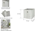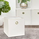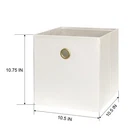Our Mainstays Vanilla Dream Collapsible Fabric Storage Bins are just what you need to help you create an organized home. Perfect for storing kids to adult clothes, books, electronics and more, these bins' 10.5-inch by 10.5-inch by 11-inch size offers plenty of room to keep a wide variety of belongings neatly tucked away, and their sturdy, round metal handle allow you to pull them off shelves and slide them back in with ease. You can utilize our Mainstays Storage Cube's organizational expertise in your living room, bedroom, laundry room, and dorm room. When not in use, you can easily fold the bin down flat and keep it stored away in your closet for later. The fabric storage cubes are made to fit with our Mainstays Cube Storage Organizers (not included) and are designed with a durable polyester fabric that holds their shape. With a variety of colors to choose from, you'll be able to perfectly match your home decor when you get organized with our Mainstays Collapsible Fabric Storage Bins. Helps you to create an organized and comfortable home Includes 4 off-white cube organizer bins Perfect for pairing with your favorite colors and patterns to mix and match Bin features an easy carry handle on the side that makes it easy to take the bin wherever you need to go Can be used with our Mainstays Cube Storage Organizer units or independently Cubes are collapsible when not in use to maximize your space Ideal for storing books or kids and adult clothing in the bedroom, living room, laundry room or dorm rooms Made of durable polyester fabric that won't crease easily, has good abrasion resistance and holds its shape Dimensions: 10.5" L x 10.5" W x 10.75" H (26.5 cm x 26.5 cm x 27.3 cm)