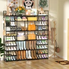 shoe rack shoe shelf shoe storage shoe organzier closet large shoe rack, boot storage 10 tier 72 pair metal shoe shelf black entryway shelves durable large big stackable cabinet free standing row sturdy LARGE CAPACITY 9 TIERS SHOE RACK --- Size: 68x 12x 66.5 Inches. Heightened and widened design make this large shoe rack stores up to 72-80 pairs adult shoes, won't wobble or topple. The height of this shoe storage rack can be freely assembled according to the needs of the shoes in different heights, such as Martin boots, women's boots, snow boot, high heels, sneakers, slippers, kid shoes, roller skate etc. EXPANDABLE & DIVIDABLE SHOE RACK--- You can DIY this big shoe rack according to your family storage needs. Split one big shoe rack into two or more storage racks, you can place the small shoe rack in closet, the other rack in your entryway, bedroom or living room. In any case, a sturdy organizer rack can keep your shoes or toys, tools well organized. DIY shoes racks, great solution to keep your entryway, closet, dormitory, garage... away from mess. STURDY COMPACT CONSTRUCTION ---large shoe organizer rack applied high quality PP as connectors and 13mm diameter sturdy smooth powder-coated corrosion-resistant metal pipes, good stability and prevent rusting, enables this shoe rack load much heavier duty and more durable while using. with 2 rows versatile hooks(10 hooks), 8 PP thick waterproof PP cover sheets, waterproof and easy to clean. DISASSEMBLED & ASSEMBLED FREELY---With hammer, the simple structure, numbered parts and detailed instructions, Let you can spend less time assembling. Please refer to the installation manual of the free standing shoe racks. DIY the shape you need (some shape show on product details picture). 100% SATISFACTION - offer LIFETIME professional customer service. If you have any question with our shoe rack, please let me know, we will full replacement ASAP! Tips: Use Warm water to soak the plastic part before use and use the Wooden Hammer provided for more Smoother installation.