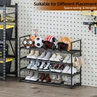 ✨ Transform Your Space with the Shoe Rack! ✨ Organize your footwear in style with our spacious shoe storage solution! 👟👠 With dimensions of 11.8"D x 32.7"W x 28"H , this versatile shoe organizer fits perfectly in any entryway, closet, or living room. Its elegant design complements any decor, adding a touch of sophistication to your home. 🎨 🔧 Easy to Assemble! Enjoy a tool-free assembly process that lets you set up your new shoe rack in minutes. Just stack and go! 🚀 🛠 Customizable Layering Adapt your storage needs by stacking different tiers! Create a 6-tier or 7-tier shoe organizer based on your space. Perfect for maximizing storage in small areas! 📏 💪 Durable & Reliable Made from sturdy metal and quality connectors, this metal shoe rack is built to last, keeping your shoes secure for years to come. With a two-year warranty and excellent customer service, we prioritize your satisfaction! 🔒 🌟 Space-Saving Design The sleek, polished finish not only looks great but also helps you save space. This shoe rack is perfect for small homes, helping you keep your space organized without compromising on style. 🏠 🤝 Customer-Centric Service At , our customers are our top priority. Enjoy peace of mind with our reliable after-sales support. We're here to help you every step of the way! 💖 Get your Shoe Rack today and elevate your organization game while adding beauty to your home! 🛒✨ SPACIOUS SHOE STORAGE:The shoe rack provides generous storage space with dimensions of 11.8"D x 32.7"W x 28"H, perfect for organizing various footwear types. This shoe organizer can hold up to 22 lbs per tier, accommodating everything from sneakers to heels, making it an essential shoe rack for your front door entrance or closet CUSTOMIZABLE LAYERING OPTIONS:This versatile shoe rack allows for flexible DIY configurations. Easily stack two 3-tier units to create a 6-tier shoe organizer, or combine a 3-tier and a 4-tier unit for a 7-tier setup. Its interchangeable tiers make this shoe rack organizer adaptable to your specific storage needs, whether in a closet or entryway STURDY AND DURABLE DESIGN:Crafted from robust metal tubes and reinforced with high-quality plastic connectors, this metal shoe rack ensures long-lasting stability and strength. Designed to withstand everyday use, it provides a reliable shoe storage solution that won’t deform over time—perfect for your shoe shelf in high-traffic areas EASY ASSEMBLY WITHOUT TOOLS:Setting up your shoe rack for the closet or entryway is quick and hassle-free! With intuitive design and straightforward instructions, you can assemble the bottom tier, and the remaining tiers stack effortlessly—no tools required. Enjoy a speedy setup that allows you to organize your shoes in minutes VERSATILE FOR ANY ROOM:With its polished finish, this shoe rack complements any decor, making it a stylish addition to your home. Ideal for small spaces, it fits perfectly in garages, walk-in closets, entryways, and living rooms. This multifunctional shoes organizer enhances your decor while keeping your footwear neatly organized