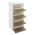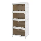 4-Tier Foldable Storage Organizer w/Wheels Stackable Clothes Cabinet Storage Box Description Are you troubled by home storage? Are you looking for a storage cabinet that is both practical and easy to move? Our 4-tier foldable storage organizer will be your ideal choice, making your home environment instantly tidy and orderly. The spacious design makes it superior in storage capacity, meeting your diverse storage needs. It is a home storage artifact that combines space optimization, convenient mobility, durability, and thoughtful design. Choosing our product means choosing a more organized and convenient way of life. Key Features Made to Last: This product is made of premium PP, treated with an injection molding process, which is sturdy, impact-resistant , scratch-resistant , and rust-resistant , ensuring long-term aesthetics and practicality. Modern Appearance: The pleasing white and tan color scheme, simple appearance , and smooth lines add beauty elements to your room. It plays a unique decorative role while using, bringing an exquisite charm into your home. Spacious Space: It has a 4-tier design, which is enough to easily store clothes, snacks , cosmetics, and other items(not included), making your room cleaner. Foldable Design: It can be quickly folded flat when not in use to be placed in the corner of the room or car boot to save storage space. User-friendly: Unlike magnetic buckles, the door panel of this product adopts mechanical buckles, which have better locking mechanisms and will not easily pop out. In addition, it can be opened from the front door and rear door, both of which can conveniently retrieve items from different directions, providing you with convenience. Easy to Move & Fix: Four universal wheels (two with brakes) make the whole product easily moved from one place to another and can be fixed at will, greatly enhancing efficiency and convenience. Visible Design: The translucent doors allow you to quickly search for items while ensuring that internal items are not completely exposed, providing a certain level of privacy protection. Free Assembly: The modular design allows you to freely choose the number of tiers to assemble, fully adapting to different storage needs and space layouts. Effortless Cleaning: It has a smooth surface and a simple structure, so you only need to wipe the dust or residue with a towel. Ideal Gift: With good performance and a modern appearance, it can be used as an ideal housewarming gift for parents, friends, and lovers so that they can also enjoy a more exquisite and convenient life. Good Customer Service: We aim to provide quality products and services. If you have problems, please feel free to contact us. We will reply and solve the problem for you as soon as possible. Details Raised Bottom: It is conducive to moisture resistance and facilitates cleaning. Side Buckles: They make each tier of the organizer firmly fixed, and improve the stability of the product. Smooth Edges: They no t only increase the beauty of the product but also improve the safety of use. Application It is used to store clothes, books, cosmetics, toys, snacks, perfume, and other items(not included). It is suitable for a bedroom, children's room, kitchen, laundry, dormitory, and other places. Specification Color: White Material: PP Process: Injection Molding Style: Modern Number of Tiers: 4 Assembly Required: Yes Mount Type: Freestanding Type of Wheels: 4 * Universal Wheels (2 with Brakes) Total L oad-bearing Capacity: About 10-15kg/22.05-33.07 lbs (For Reference Only) Product Size: 62*38*132cm/24.41*14.96*51.97 in Package Size: 62.5*32*40cm/ 24.61 * 12.6 * 15.75 in Gross Weight: 10kg/ 22.05 lbs Net Weight: 9.5kg/ 20.94 lbs Package Included 1* 4-tier Foldable Storage Organizer 4* U niversal Wheels Notes Please note that this product does not include other storage items shown in the picture. Please use within the load-bearing range of the product. Please allow the slight color difference caused by the shooting light and 1-3cm error due to manual measurement, and make sure you do not mind before ordering. Brand CNCEST Item Height as pictures shown Item Length as pictures shown Item Width as pictures shown Type Foldable Storage Organizer Material PP Color White
