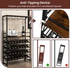 Product Description About this item Industrial & Modern Appearance: Our wine coolers are a perfect blend of industrial charm and sleek design elements. The attractive wood-grain top combines with the sleek black metal frame to blend seamlessly with a variety of room styles. Whether placed in your home bar, kitchen or dining room, this versatile wine rack will be a charming focal point in your living space. Secure & Solid Design: The reinforced metal frame ensures durability, while the adjustable legs provide a stable base. Each rack has a weight capacity of up to 110 pounds. Additionally, an anti-toppling devices securely attaches the wine rack to the wall, eliminating wobble and enhancing security. Ample Wine Storage Capacity: Boasting a generously spacious design, this wine storage shelf offers 4 rows of stemware racks and a 4-tier wine storage system. With the capability to accommodate up to 16 glasses and 32 wine bottles simultaneously, it provides an ideal storage solution for both your prized stemware and cherished wine collection. Versatile Storage Solution: with a spacious top and an open storage shelf, this industrial wine rack provides the perfect space for decorative items, wine coolers, ice buckets, utensils and even a coffee maker. This wine holder stand can also be used as a modern coffee bar, a practical kitchen shelf or a handy microwave rack for your unique and versatile daily needs. Easy to Assemble: Our floor standing wine rack is a breeze to assemble. We provide detailed instructions and all the necessary hardware so you can assemble this product quickly and effortlessly. In addition, its finished dimensions of 31.5" x 12" x 55" (L x W x H) ensure that it won't take up too much floor space in your home. Description: Are you still struggling with how to organize your wine and wine glasses? Let's have a look at this industrial 4-tier wine rack! 4 rows of stemware racks and 4 tiers of wine shelves ensure that this multi-purpose wine holder stand display can hold up to 32 bottles of wine and 16 glasses, and the countertop can also hold small kitchen utensils or a coffee maker. The sturdy metal frame makes this wine rack rust-resistant, stable, and resistant to wobbling. Adjustable feet add sturdiness and floor protection. To keep your items safe, an anti-falling bar and anti-toppling device are included to keep the wine rack stable. This freestanding wine rack is an ideal choice for you! Specification: Color: Rustic Brown + Black Material: Engineered Wood + Metal Overall Dimension: 31.5” x 12” x 55”(L x W x H) Distance Between Each Shelf: 22.5”, 6.5”, 5”, 5.5”, 5.5” Leg Height: 5.5” Bottle Capacity: 32 Glass Capacity: 16 Suitable Bottle Size: 2.2”-3.5” x 7.9”-13.8” (D x L) Weight Capacity of Each Shelf: 100 lbs Net Weight: 39.5 lbs Package includes: 1 x Floor Wine Rack 1 x Instruction