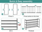 Still looking for your shoes anywhere? Wanna store all kinds of shoes at the same time? Our shoe stand can solve all your question! Say Goodbye to Mess: 4 Tier Shoe Rack holds up to 30 pairs of shoes, shoe rack for closet is 43" length, longer than others general metal shoe organizer, meet family members' shoe storage needs, such high heels, flats, sneakers, flip flops, sandals, wedges etc, find a home for your shoes, shoe shelf keep your closet and home away from mess; Heavy Duty Shoe Rack: Closet shoe organizer made of anti-rust metal tubes and wire grid, each tier shelf holding up to 15-20 lbs, which enables this closet shoe rack load much heavier duty and more stable while using, giving your shoes stable, reliable support, also sturdy shoe rack durabel enough to store water bottles, drinks; The Wider and Higher, The Better: Each wider shelf can store about 5 pairs men's shoe or 6 pairs women's shoes,top row of shoe organizer for closet fits knee-high boots, the height between each tier shelf is 8", closet shoe storage is higher than others 4 tier short shoe rack, special designed for high-heeled ankle boots or size 13 in men's running shoes, DIY For Your Needs: Stackable shoe rack after stacking can store 60 pairs, disassemble one shelf to provide adequate storage space for taller boots, according to your usage habits to free assembly, Each shelf has a baffle and dense mesh layer design to prevent high heels from falling; Easier Assembly, Easier Life: you'll assemble the shoe holder in 5 minutes if you follow the detailed instructions in the package; Invite this shoe rack organizer into your entryway,living room,bedroom,garage,mudroom,attic,kitchen,pantry or anywhere extra storage is in need, shoe stand can always keep your home neat and tidy!