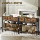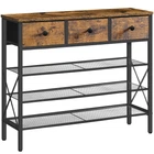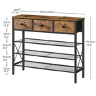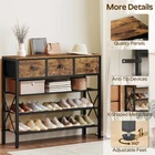 4-Tier Industrial Shoe Rack Tired of a cluttered entryway and a countertop piled with small items? The shoe rack solves the problem! Three non-woven fabric drawers keep small items organized, allowing you to find what you need before heading out. Fine mesh shelves and a spacious top maximize vertical storage, utilizing space efficiently in tight areas. This versatility rack doubles as a living room plant stand or a practical kitchen organizer. Blending style and functionality, it is the ideal addition to your home. Ample Storage with 3 Large Drawers: The shoe storage organizer features 3 non-woven fabric drawers, ideal for storing shoe polish, shoe horns, keys, gloves, and other small items, allowing for quick access before heading out and keeping your entryway clutter-free Efficient 4-Layer Design: Measuring 35.4"L x 11"W x 31.2"H, the entryway shoe rack organizer maximizes vertical space with 3-tier metal mesh shelves and 1 wooden countertop, holding approximately 4-5 pairs of shoes per shelf, fulfilling storage requirements Versatile Shelving Unit: Designed with a vintage industrial style, this rustic shoe rack with drawer blends classic and modern aesthetics and serves as a shoe rack for front door entrance, plant display shelf, or kitchen organizer, adapting seamlessly to various settings to enhance your space High-Quality Materials for Durability: Our shoe rack for closet is crafted from quality particleboard and sturdy metal, with X-shaped metal bars on the sides for enhanced stability. The fine mesh of the shoe stand prevents heels from getting stuck, ensuring a better user experience Simple Installation Process: All parts of the shoe shelf are labeled with numbers and come with a detailed instruction manual and necessary tools. Follow the guidelines to effortlessly assemble the shoe organizer. Please use anti-tip devices for steadiness of the wooden shoe rack with drawers