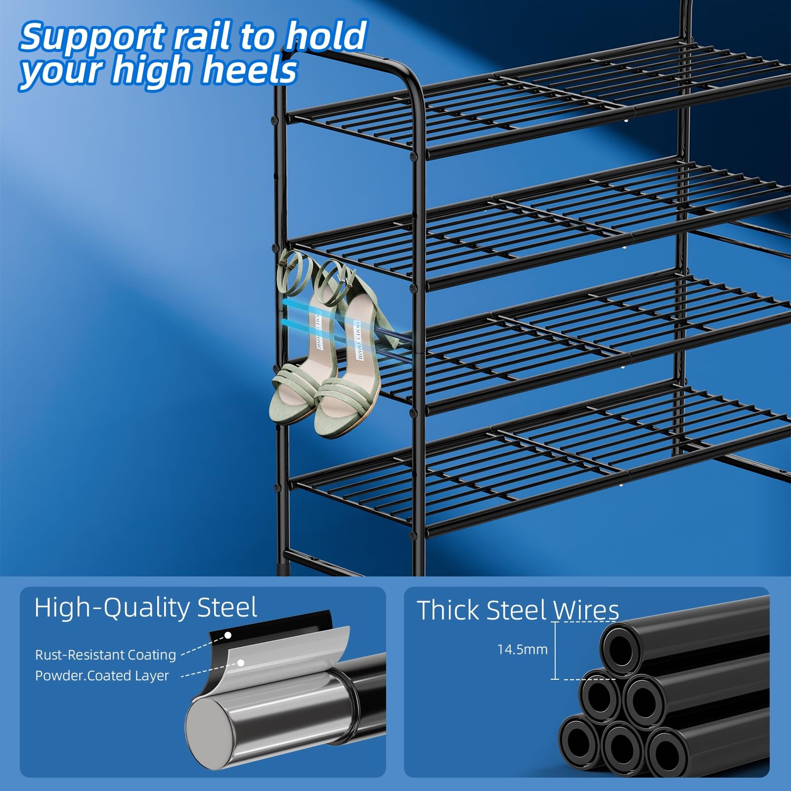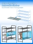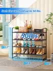 100% SATISFACTION: Money back guarantee ensures this will quickly become your favorite no-risk purchase. This makes a great gift for birthdays, anniversaries, Christmas, and anyone who just got a new shoe rack. 【Large Capacity for 20 Pairs】: Size of metal shoe rack: 32.5"Wx12"D x32"H. Large 4 tier shoe organizer for closet can store 20-25 pairs of shoes for men, women and kids. Each tier wide enough storage for 4 pairs of men's sneakers, tennis shoes etc, extra bottom storage for flats, slippers and flip flops enough. 【High Quality Shoe Stand】Shoe rack for entryway made of anti-rust metal pipes and wired grid, strong load-bearing (each layer can bear about 50 lb), shoe rack for closet is different from the cloth shoe rack that sags obviously when shoes are put in, also can store water bottles, drinks or small kitchen appliances. 【Stackable & Removable】: 2 sets can be expand into a 4-tier stackable shoe rack, can adjust it into different tiers of shoe racks for store more shoes, also can remove a row to adjust the height of shelves, even the high boots, you can store it easily. 【Quick & Easy assembly】: Heavy duty shoe racks comes with numbered parts and detailed illustrated instructions, include assembly tools and simple structure design makes it very easy to assemble. USPTO Patent No: US D967659