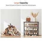 Specifications: - Color: Rustic Brown, Black - Material: Particleboard, Steel, Polyester Fabric - Product Size: 11.8"D x 29.5"W x 28"H (30 x 75 x 71 cm) - Product Weight: 11.4 lb (5.2 kg) - Max. Static Load Capacity of the Top Surface: 66 lb (30 kg) - Max. Static Load Capacity per Fabric Shelf: 22 lb (10 kg) Package Contents: - 1 x Shoe Rack - 1 x Anti-Tip Kit - 1 x Accessory Kit - 1 x Instructions Notes: - The max. static load capacity of the top board is 66 lb, that of each fabric shelf is 22 lb. Do not exceed its weight limit. - For safety, be sure to attach the product to the wall with the included anti-tip kit. [Large Capacity] This 11.8"D x 29.5"W x 28"H shoe rack can hold up to 9 pairs of men's shoes or 12 pairs of women's shoes. The distance between each of the 3 polyester fabric shelves is 7.9" to fit heels and high tops on the shelves [Versatile Storage Shelves] Put this shoe shelf wherever you need extra storage space. In the entryway? In the dressing room? In the bedroom? All no problem! It is also suitable for apartments and dormitories. A real all-rounder! [Sturdy and Stable] A sturdy steel frame, alongside adjustable feet, keeps the shoe rack balanced on uneven floors. The Max load ability of the top is 66 lb with each shelf bearing up to 22 lb. The included anti-tip kit secures it to the wall for added safety [Easy to Assemble] Thanks to detailed instructions and clearly marked parts, you can assemble this shoe rack for entryway in no time and the great "shoe clean-up" can begin! [What You Get] A shoe organizer with 3 fabric shelves, illustrated instructions, an assembly bag, and an attractive industrial design to add more charm to your entryway