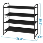 What does this DIY shoe rack have to offer? Stackable: This 4-tier shoe rack provides shelves for keeping flats, boots, high heels, kids’ shoes. Two sets can be stacked or placed side by side to create a large capacity shoe rack and fit your space. Versatile Storage Shelf: You can place this rack anywhere you want, such as in the entryway, closet, garage, living room or mudroom; also great as a storage shelf for dry food, books, games, toys, craft supplies, etc. Will you find any more possible uses? Just find out yourself with this versatile utility rack. Specifications: Color:Black Material: Metal + Fabric Product Size: 26.8" * 11.5" * 25.5" Package Contents: 1x 4 Tiers Shoe Rack 1 x Assembly Manual 4 x Metal Connectors ( for stacking ) 【4-TIER SHOE RACK】 Stores up 12-16 pairs of shoes for men, women, additional bottom storage for slippers. Allow extra storage which can hold sundries in your kitchen, living room 【Multifunctional】In the living room, the shelves can hold sundries.Put it in the closet and keep the clothes neat. Make the utility room looks cleaner. 【STACKABLE & EXPANABLE】Include 4 connectors and stack up to multiple units that maximizes storage space in the same footprint, or bridged horizontally to expand the unit (Purchase 2 and more units to build horizontally and vertically storage) 【ADJUSTABLE TIER HEIGH】Easy assembly- Simple clip the shelves into the frame. You can easily adjust the height of shelves accommodates different sizes of shoes. Even the High Boots, you can store it easy 【STURDY & DURABILITY】Made of thickened metal tube with power coated finish which is smooth and with strong corrosion resistance. Simple structure design makes it very easy to assemble.