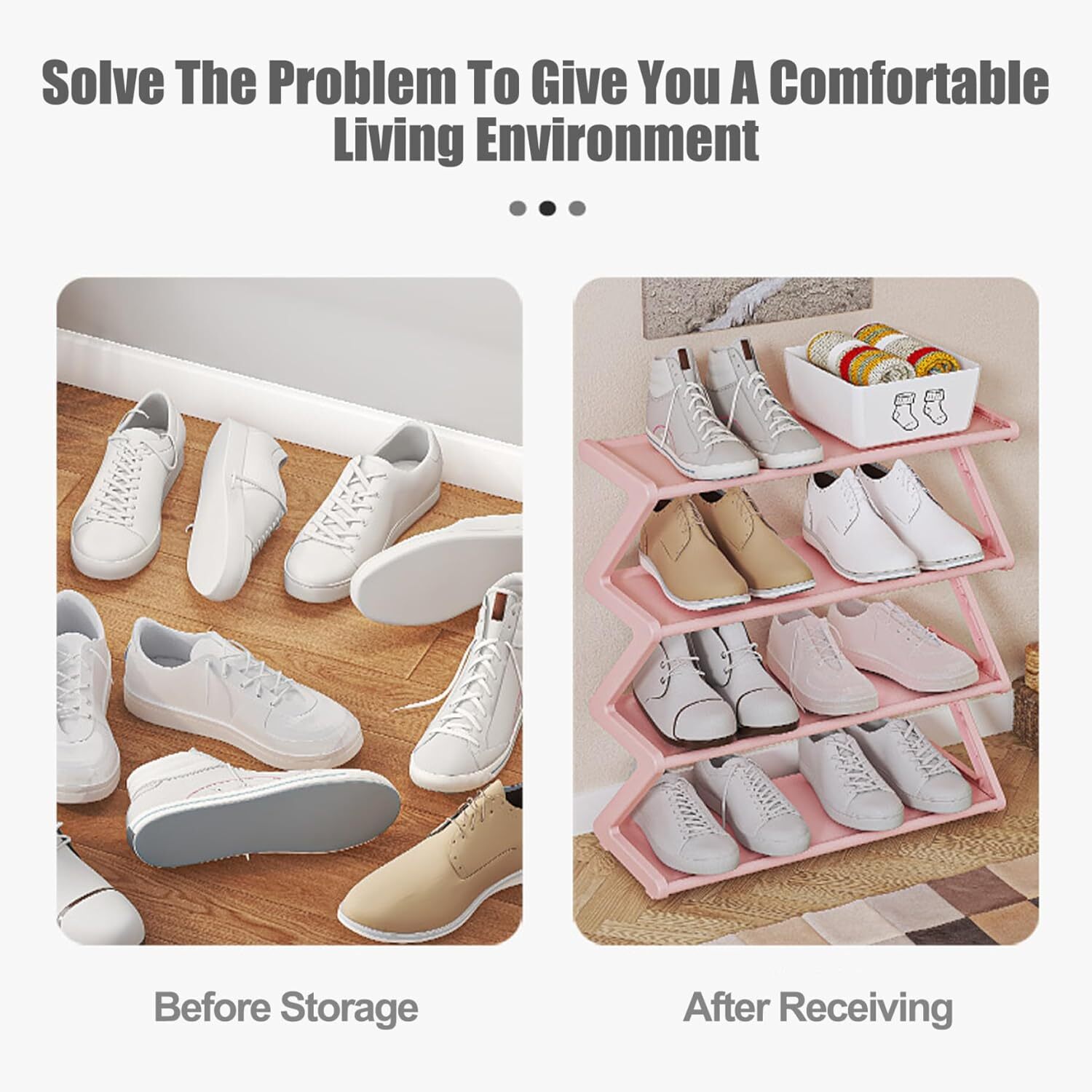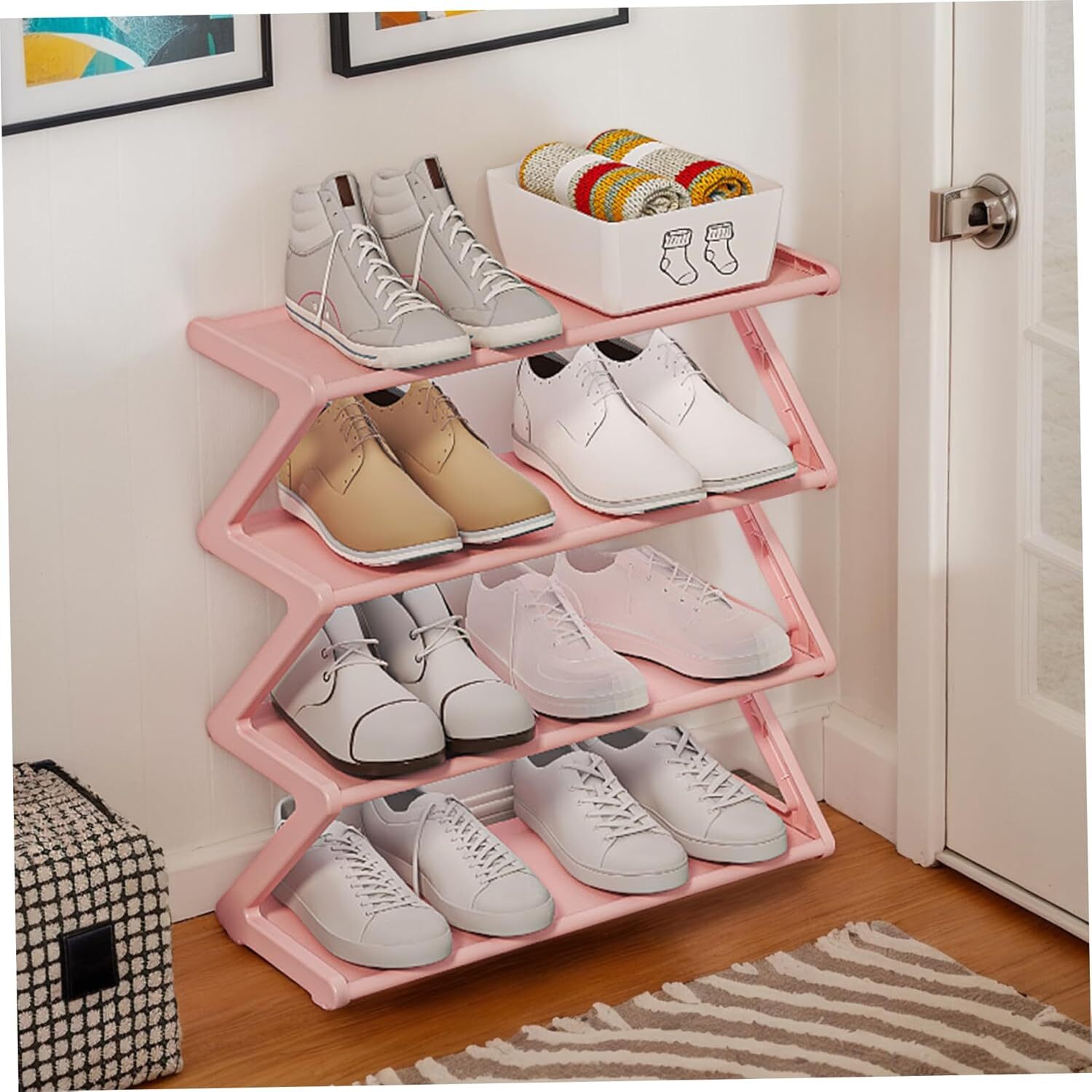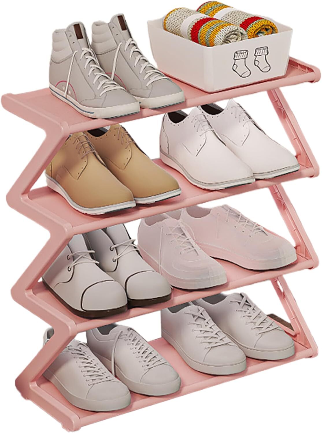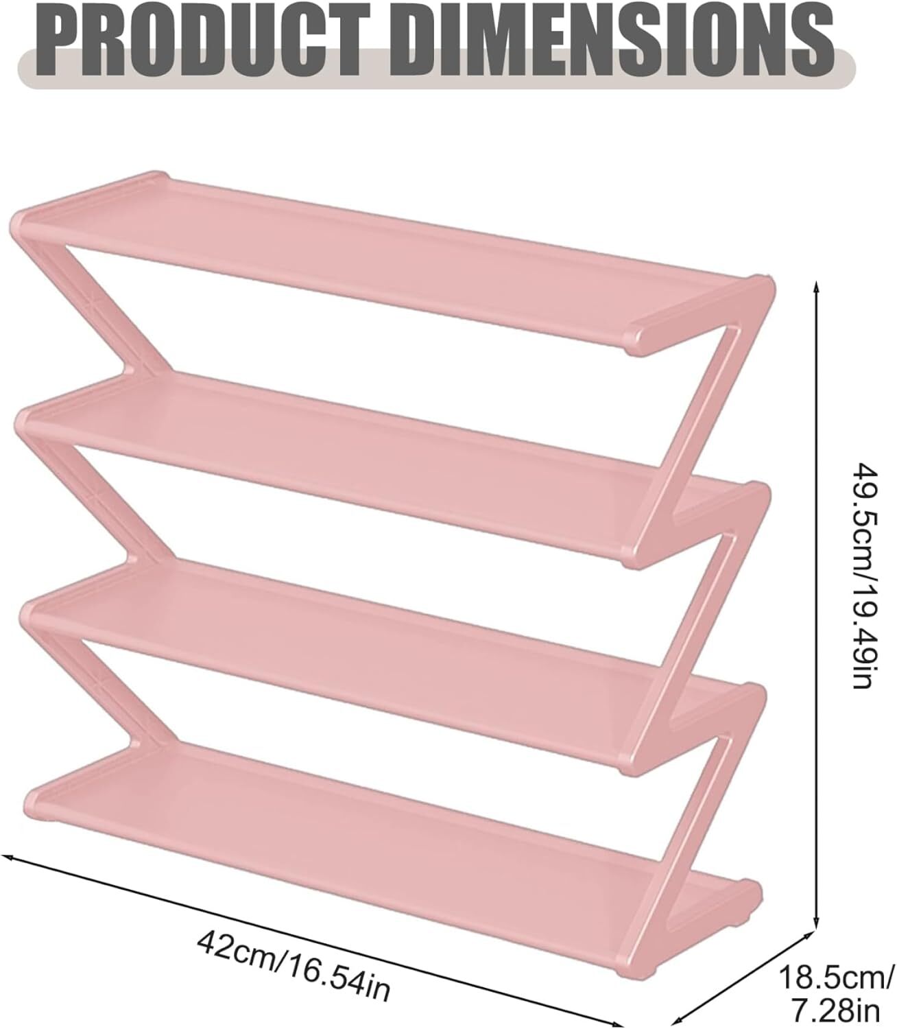 Protective & Easy Maintenance: The waterproof and dustproof materials keep your shoes clean and protected from moisture and dust, ensuring they stay fresh and ready for use while keeping your space organized. Versatile & Stylish Organizer: Perfect for bedrooms, closets, or entryways, this shoe rack offers an efficient and stylish way to organize your shoes while adding a functional touch to any room in your home. Compact & Durability Construction: Measuring 19.49x16.54x7.28 inch, built with 0.34-inch thickened steel pipes, this shoe rack offers superior sturdiness while being compact enough to fit into tight spaces. It provides long-lasting durability for organizing multiple pairs of shoes. Effortless Assembly: No tools required! This shoe rack is designed for simple, quick assembly, making it easy to set up in any space. Reorganize or move it around your home effortlessly whenever needed. 4-Tier Storage Solution: Featuring a practical 4-tier structure ans Z Shaped, this shoe rack delivers ample storage for your footwear collection, from boots to sneakers, helping keep your home neat and clutter-free. Product Description Description: Maximize your storage with this durability, space-saving 4-tier shoe rack. Crafted with thickened steel pipes, it ensures long-lasting use, while its waterproof and dustproof design keeps your shoes protected. The easy installation process makes it hassle-free to set up and reposition, making it a practical addition to any home. Ideal for bedrooms, closets, or entryways, this compact shoe rack helps you stay organized in style. Features:. Small Shoe Rack. -Color: As shown. -Material: PP+Stainless Steel+PVC. -Size: 49.5x42x18.5 cm/19.49x16.54x7.28 inch. Note: Manual measurement, please allow slight errors on size. The colors may exist slight difference due to different screens. Package Including 1PC * Small Shoe Rack