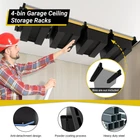 Garage Storage System: Designed for optimal space management, the garage storage racks stores up to 4 bins on top. The overhead garage storage racks are perfect for garages or sheds for efficient space organization (Note: Bins are not included) Expandable T-shaped Design: Our ceiling storage racks feature a unique T-shaped design. The garage ceiling storage hold more boxes if mounted horizontally, so you can buy an extra set for extra storage space ( Product Dimension: 16.6”L x 2.75”W x 2.8”H) 400 LBS Load Capacity: The 4-bin storage racks hold up to 400 pounds and is large enough to hold most common tools and accessories, sports equipment, camping gear and more High-quality Materials: Our garage overhead storage racks are made of sturdy, heavy-duty steel. The coating process on the surface provides effective protection against corrosion and long-lasting use Professionalism and Safety: These tote storage racks are equipped with specialty screws to securely fasten to ceiling joists and will not come loose. The anti-detachment design ensures complete safety for you and your items Easy to Install: In addition to the essential screw kits and detailed installation instructions, our ceiling racks are supplied with an drill for your convenience