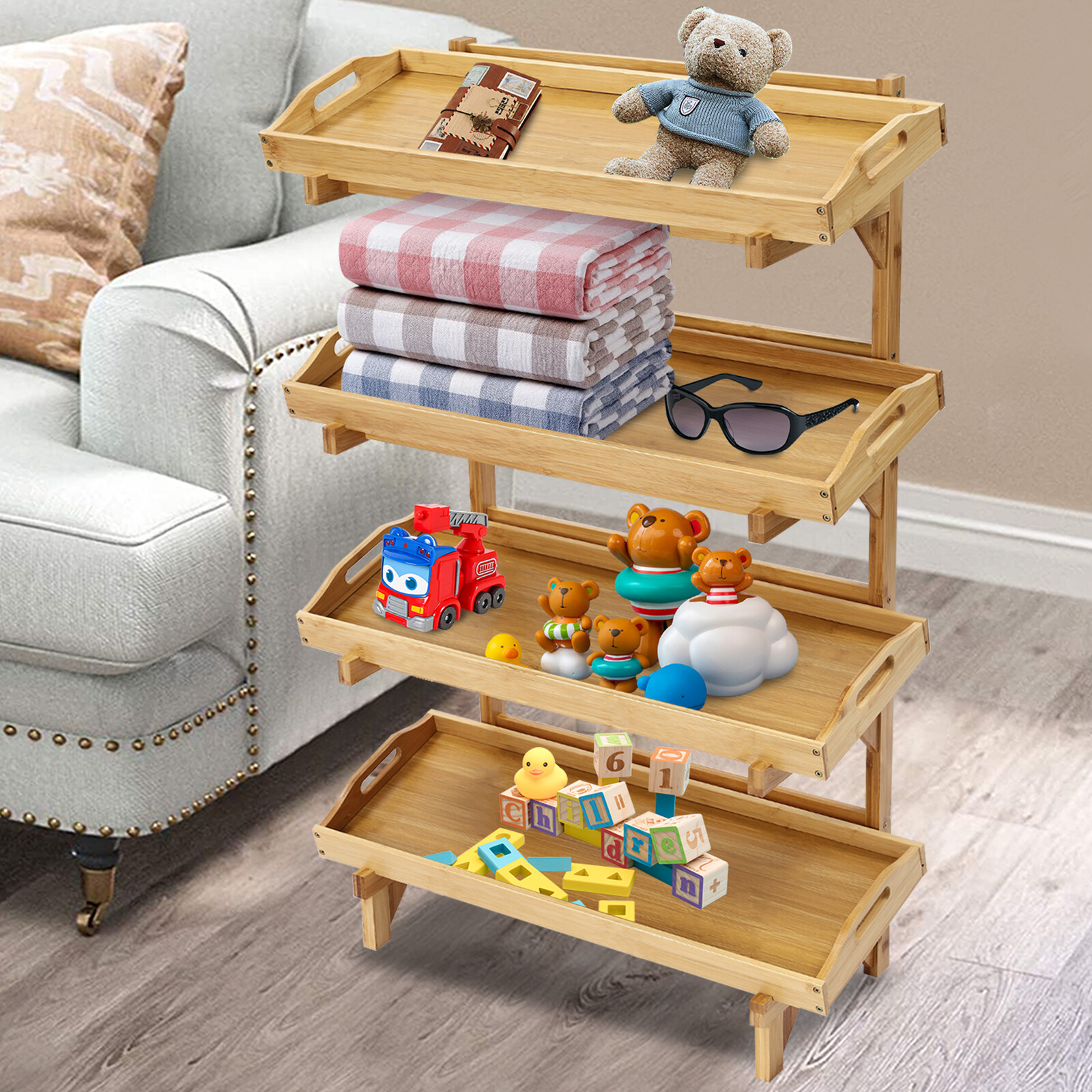Description This storage rack is not only sturdy and durable but also thoughtfully designed with enough storage space. The 4-tier design allows you to sort various fruits, vegetables, etc., The raised legs and sturdy construction allow each tier of product to hold up to 22.05 lbs. With this product, you can create a neat and cozy kitchen environment. Key Features High-quality Materials: Premium bamboo and MDF make this product wear-resistant, corrosion-resistant, and not easy to deform, so it can maintain aesthetics and practicality for a long time. Storage Assistant: The 4-tier design and suitable tier spacing (9.2in) provide you with plenty of storage space to sort fruits, vegetables, beverages, snacks, etc. on different tiers for your convenience, bidding farewell to cluttered stackin 4-tier Storage Rack, Bamboo Storage Shelving Floor Standing with Removable Trays Description This storage rack is not only sturdy and durable but also thoughtfully designed with enough storage space. The 4-tier design allows you to sort various fruits, vegetables, etc., The raised legs and sturdy construction allow each tier of product to hold up to 22.05 lbs. With this product, you can create a neat and cozy kitchen environment. Key Features High-quality Materials : Premium bamboo and MDF make this product wear-resistant, corrosion-resistant, and not easy to deform, so it can maintain aesthetics and practicality for a long time. Storage Assistant : The 4-tier design and suitable tier spacing (9.2in) provide you with plenty of storage space to sort fruits, vegetables, beverages, snacks, etc. on different tiers for your convenience, bidding farewell to cluttered stacking. Thoughtful Design : The tray can be placed flat or tilted on the frame for easy access and use. In addition, you can also disassemble it for individual use, providing you with more convenience. Strong Load-bearing Capacity : Thickened materials, stable rectangular construction, and sturdy triangle reinforcement make this product withstand about 22.05 lbs in each tier, so you can use it with confidence without worrying about collapse. Versatile Appearance : It adopts a classic log color scheme that can match most decorating styles and color themes, which is suitable for most use scenarios without limitations. Simple Installation : The simple structure, pre-drilled holes, and complete accessories allow you to complete installation and start using it in a short period. Ideal Gift : Beautiful appearance and practical function make it an excellent housewarming gift for family and friends. Effortless Cleaning : The smooth surface and simple structure make the storage rack easy to clean with water and a damp cloth. Good Customer Service : We stand behind all our guests and look forward to assisting you with your purchase. It is our pleasure to answer your confusion and questions. The end of the story between us is not "we sell and you buy". Details Guardrails : The raised guardrails on the tray prevent items from slipping. Raised Bottom : It facilitates air circulation and allows for easy cleaning of the bottom. Smooth Edges : They not only enhance the aesthetics of the product but also improve safety during installation and use. Practical Handles: The holes on both sides of the tray can serve as handles to facilitate your retrieval of the tray. Application It is suitable for storing fruits, vegetables, snacks, drinks, and children's toys in kitchens, living rooms, fruit shops, garages, offices, etc. Specifications Color: Log Color Material: Bamboo, MDF Style: Modern Shape: Rectangular Assembly Required: Yes Mounting Type: Floor Standing Number of Tiers: 4 Each Tier Load-bearing Capacity: 10kg/22.05lbs Tier-spacing: 23.5cm/9.2in Overall Product Size: 66*28*100cm/26*11*39.4in Frame Length: 59.5cm/23.4in Each Tray Size: 66*25*6.5cm/26*9.8*2.6in Package Size: 101*29.2*7.8cm/39.76*11.5*3.07in Gross Weight: 5.2kg/11.46lbs Net Weight: 4.5kg/9.92lbs Package Included 1* Storage Rack All Accessories for Installation Notes Please avoid soaking this product in water and exposing it to sunlight. We recommend that it be installed by two people and that other items are not included. Please allow the slight color difference caused by the shooting light and the 1-3 cm error due to manual measurement, and make sure you do not mind before ordering. Welcome to Rongorange Payment Delivery details Terms of sales About us Contact us Payment We accept ebay payment 。 Fees such as import duties, taxes are not included in the item price or shipping costs. These charges are the buyer's responsibility. Delivery details Shipping: 2-9 working days to: USA Terms of sales We maintain high standards of excellence and strive for hundred percent customer satisfaction. Feedback is very important to us. We hope that you contact us immediately before you give neutral or negative feedback, so that we can address your concerns. It is impossible to address issues if we do not know about them! About us Your satis faction is our ultimate goal. We work hard to earn your trust and future business. Our certified technicians have tested each item before shipping. The unit comes with 1 year limited warranty on all manufacturing defects. a) If you receive a defective item, you may return it or ask for a discount. Please contact us within 14 days after you receive the package. b) What you returned must be intact and in its original packaging as re? u. Customer is responsible for shipping costs of the returned item. c) We will cover the cost of shipping back t with the shipping rate indicated in the registration page. We will send you a new unit or refund the full payment you paid. Thank you. Contact us Business Hour Business Hour: Monday To Friday: 8:30 AM to 5:00 PM (Beijing China time) Due to time zones, our reply to your questions may not be immediately. But within above working time, we will reply your email within 24 hours. If it's non-workdays, please kindly be patient and wait till Mo