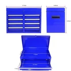 About this item: There are five drawers in the metal tool cabinet. This product does not have a lock. The metal storage cabinet comes with four wheels, so you can move the cabinet around freely. The metal storage cabinet has large internal storage space, which can meet the storage needs of customers. The overall bearing capacity of the tool cabinet is 100KG. The bearing capacity of drawers is 15KG with ball guide rails. There are multifunctional handles on the side of the tool cabinet for a screwdriver. Inside the storage cabinet there is an adjustable shelf and 4 adjustable bolts The inside door of the storage cabinet has holes for hooks to hold some tools. Specification: Color: Blue Material: Metal Size: 22.95" L x 11" W x 37.2" H Surface Technics : Powder Coating Usage Scenarios : Garage; Workshop Thickness : 0.5~0.6MM Weight (lbs.): 38.60