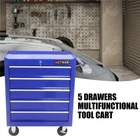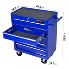 About this item : The ARTMAN tool trolley is equipped with a total of 5 drawers . The tool box is also lockable and can be used as a removable, attachable and mobile case attachment The opening and closing of the drawers of the tool cabinet is very gentle thanks to the ball-bearing drawers. The robust and powder-coated steel construction is used for high wear resistance. This assembly trolley has 4 steering wheels, 2 of which with parking brakes, so you can move the trolley freely in the garage, but also stop in one place Specification: Color: Blue Material: Cold Rolled Steel Surface Finish: Powder Coating Casters: 4" Casters (2PCS with brake and 2PCS without brake) Size :24.25*12.99*29.33 5 Drawers Dimension: 20.11*12*3.3 Weight (lbs.): 48.50
