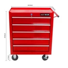 5 Drawers Rolling Tool Chest Tool Storage Cabinet Garage Cart Workshop w/ Wheels About this item : The ARTMAN tool trolley is equipped with a total of 5 drawers . The tool box is also lockable and can be used as a removable, attachable and mobile case attachment The opening and closing of the drawers of the tool cabinet is very gentle thanks to the ball-bearing drawers. The robust and powder-coated steel construction is used for high wear resistance. This assembly trolley has 4 steering wheels, 2 of which with parking brakes, so you can move the trolley freely in the garage, but also stop in one place Specification: Color: RED/BLACK/BLUE Metrial: Cold Rolled Steel Surface Finish: Powder Coating Casters: 4" Casters (2PCS with brake and 2PCS without brake) Size : L616mm(24.25inch)*W330mm(13inch)*H745mm(29.33inch) 5 drawers Dimension L511mm(20.11inch)*W305mm(12inch)*H85mm(3.3inch) Net Weight: 22KGS/48.5LBS