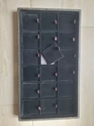5 Jewelry trays with specialty inserts in our opinion, good shape but do not order if in doubt NO RETURN ITEM (postage too high) 2 trays with 24 item dividers---inserts are removable 2-18 item jewelry tray inserts with square velvet 2x2 inserts (pocket on back for pricing, etc)--- Only the 2x2 can be removed, the divider is fixed to tray 1 tray with removable insert for (12) bracelets, pens, etc.
