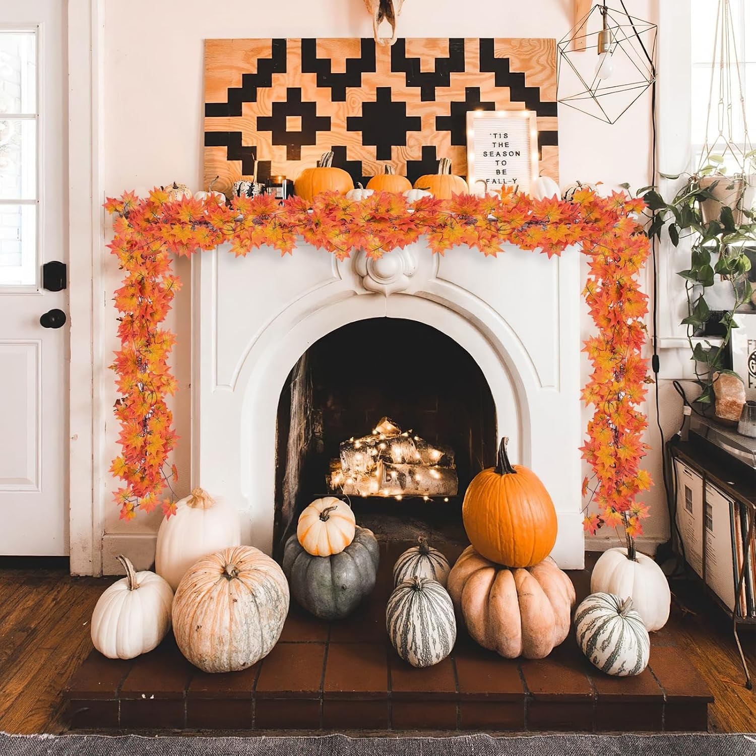 $ 34.8535.4FT Autumn Garland Set - 6 Pack Orange Fall Decor for Home