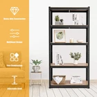 Features: 1.Adjustable height -- The height of the storage shelf is adjustable.You even can assemble them into two small shelves or workbench according to the needs of the use. 2.Heavy duty frames -- This storage shelf is constructed of premium metal plates and MDF boards, offering you a sturdy bearing with high capacity up to 175kg/386 lb per tier. 3.Durable -- The garage shelves feature antirust coating to ensure a long use life. 4.Moulded feet -- It features with moulded feet for added stability and also can avoid causing damage to the ground and floor. 5.Easy to clean -- Wipe With A Dry Cloth. 6.Easy to install -- This storage shelf arrives with flat packed but is easy to assemble as no screws or bolts are used. 7.Perfect for storage and organization. Multiple uses: The goods rack is versatile for basement, storage, workshop, shop, home, bedroom, living room, kitchen, etc. Specification: Colour : Black Material : Steel & MDF Size : 5 Tier Shelf, H 180 x W 90 x D 40 Cm Package included: 1x Storage Shelving Unit- Black