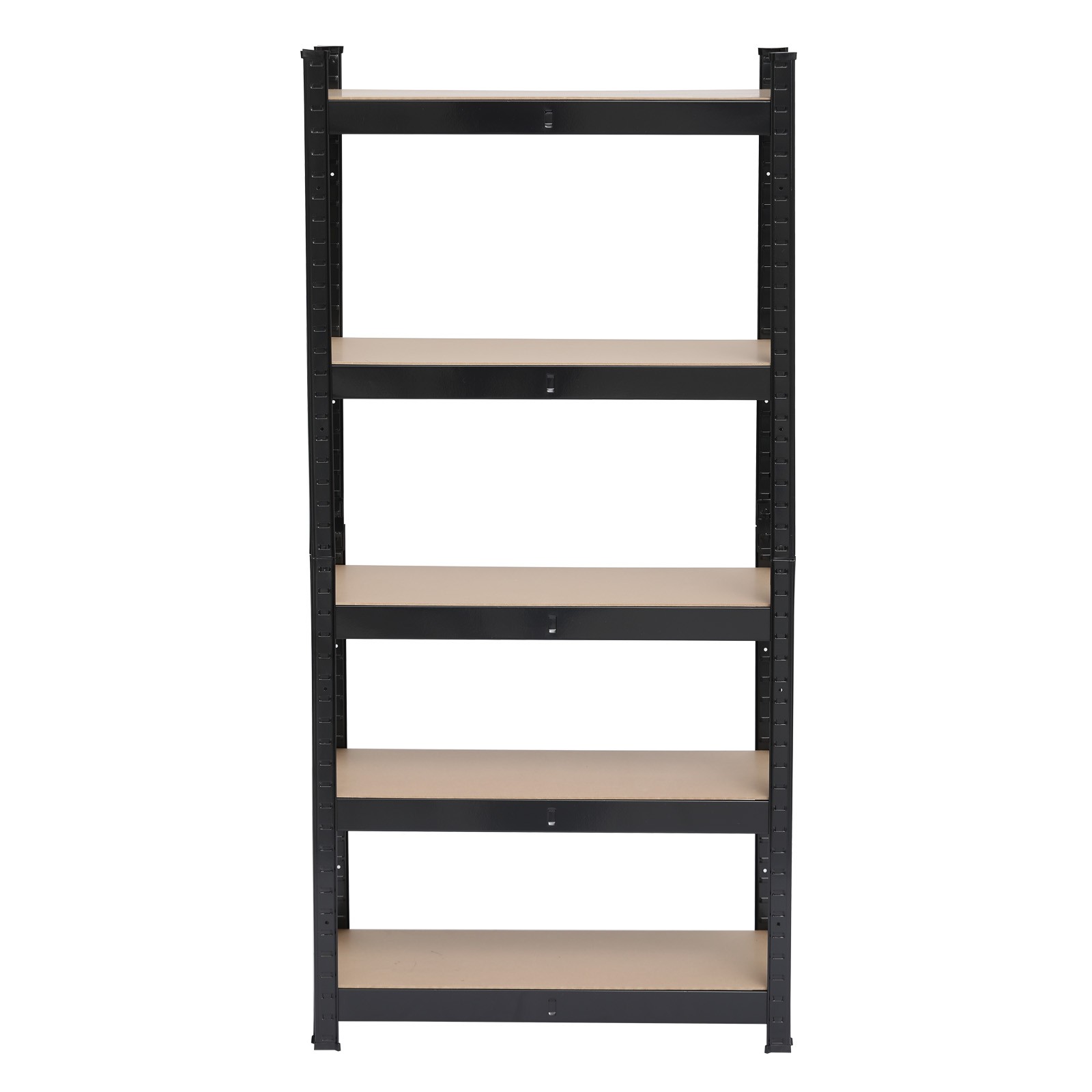 Introductions: This high quality storage shelf is constructed of metal plate. This 5-tier shelving unit can be used separately or combined with other shelves into a larger storage space to meet your various needs. Its boltless design allows it to be easily assembled and disassembled. This storage rack can be disassembled into a compact size for easy storing and transporting. It is an ideal storing and displaying solution in kitchen, garage, workshops, warehouse, and balcony. Features: 1. 5 adjustable MDF Shelf Boards 2. Shelf Super strong MDF Board 4mm thickness 3. Load up to 150kg per shelf 4. Fully Adjustable to any level 5. Shelf just snaps together (no bolts required) 6. Just use a rubber mallet (not included) Specifications: 1. Color: Black 2. Material: Steel & MDF 3. Finish: Powder Coated 4. Dimension: (27.56 x 11.81 x 59.06)" / (70 x 30 x 150)cm(L x W x H) 5. MDF Board Thickness: 4mm 6. Max. Capacity (per tier): 330.69lbs / 150kg Package Includes: 1x 5-Tier Heavy Duty Metal Garage Shelving