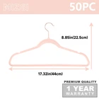 Dorm room essentials hangers for college students.Full Adult Standard Size- (LxWxH): 17.5"x0.2"x9" inches.Made of Top Quality 2025 ABS Plastic,Eco-friendly Blush Pink Nylon Flocked with Rosegold Hook.VALUE PACK of 50 pcs SUPER STRONG- huggable hangers that it will steadily hold even the heaviest clothes in your closet, can hold large capacity from 11lbs to 18lbs.It is stronger and lighter than wooden hangers but sturdy to hold heavy coats without getting bent NONSLIP - Supreme soft velvet instead of plastic or metal leaves no crease on the pant when you fold them over.Prevents slippery or wide neck clothes from slipping off, no shedding or fading on your white clothes with latest flocking technique MAXIMIZE CLOSET SPACE - Designed hangers Increases Closet space by as much as 50 percent.The slim and sleek design efficiently works, maximizing space and adding class, helping you organize your wardrobe in the most space efficient manner SWIVEL ROSEGOLD HOOKS - can be 360 degree rotated, which easy sorting of clothes no matter which direction you hang your clothes, strongly attached to our durable hanger so the hook doesn't detach or snap easily