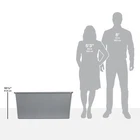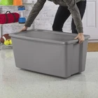 Product details Stay organized with 50 Gallon Storage Bin. The square, space-efficient shape features a deep recessed lid which allows bins to stack securely, maximizing vertical storage space. The broad rim adds strength and the textured integrated handles make for easier carrying and lifting. Contain and conceal clutter throughout your home to create a neat and tidy living space! This jumbo size is ideal for bedding, off-season clothing, seasonal decorations, sporting gear, and more in the basement or attic. Note: Use good judgment when storing items, don’t overload, keep heaviest bin at bottom, and don’t stack too high. The overall assembled dimensions of this item are 40" L x 22 1/8" W x 18 1/8" H. 50 Gallon Tote, Plastic Storage Bin with Snap-on Lid, Gray Outside Dimensions: 40" x 22 1/8" x 18 1/8" Interior Dimensions at bottom: 33" x 17 1/4" x 17 5/8" Integrated handles with textured surface provides a sure grip Deep recessed snap-on lid allows for secure stacking Jumbo capacity is ideal for storing larger, bulky items in the garage, basement and attic Use good judgment when stacking items, keep heaviest bin at the bottom BPA-free and phthalate-free