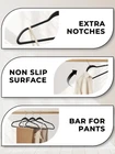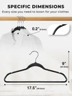 Non Flocked Hangers - No worries of faded velvet at home. Our clothes hanger are made of High Density ABS plastic that allows you hang the heavy clothes on and off easily, making hanging process faster and feel good.Thin hangers it is but great power of them for every clothes less than 11 lbs, you would be worried that why hangers made of ABS plastic are so strong that you could change the new one for no reason Space-saving for Storage - Maximize Your Closet Space with these slim hangers! Measuring the same thickness as flocked hangers, our thin hangers are great for small closets, freeing up valuable space for more clothes and accessories.Hangers space saving for everywhere could be a great solutions for storage of closet, organizing any corner for extra season clothes changing High Quality ABS Plastic - Made from durable ABS plastic and featuring a 360° metallic swivel hook, our black hangers are built to withstand the weight of your heavy clothes. Hang winter coats or jackets, our non-flocked slim hangers won't break or bend. We promise you the great value hanger you got in our store, thinking its durability and perfectly suitable for most closet, looking stylish as you could imagine Great Support No Bump - These adult hangers work great with all kinds of garments, You can use them for blouses, shirts, suits, jackets, and more. Nonslip notches and curved shoulders design will keep your clothes securely in place.Say goodbye to that tangled clutter of hangers in every size and shape Standard Adult Dimensions - Measuring 17.5 inches in length, 9 inches in height, our clothes hangars are the perfect size for any clothing item. With their sturdy construction and ample size, our plastic coat hanger provides a reliable and versatile solution for all your hanging needs.With a thickness of 0.2 inches, these 50 pack plastic hanger saves you 50% of your space compared to a regular brace. Making them a great space-saving organizer for bedroom closets Product Description 17.5in Hangers 50 Pack - Premium Black Clothes Hangers - 360 Degree Swivel Hooks The video showcases the product in use. The video guides you through product setup. The video compares multiple products. The video shows the product being unpacked.
