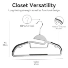These hangers are a game-changer! The sturdy ABS plastic holds up heavy coats without bending, and the non-slip rubber grips keep clothes perfectly in place. Love the built-in accessory bar for scarves and ties—saves so much closet space. The swivel hooks make organizing effortless, and the pant bar keeps trousers wrinkle-free. Perfect for any wardrobe upgrade!