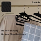 ๐ข๐ป๐ฒ-๐๐ผ๐น๐ผ๐ฟ ๐๐ผ๐ผ๐ธ ๐๐ฎ๐ป๐ด๐ฒ๐ฟ๐: Black plastic with black 360ยฐ swivel hook for a stylish one-color look. All 50 pack makes your closet more attractive. ๐๐ฒ๐ฎ๐๐ ๐๐น๐ผ๐๐ต๐ฒ๐ ๐๐ฝ๐ฝ๐ฟ๐ผ๐๐ฒ๐ฑ: The 5 layers structure of the hook and durable ABS plastic makes our hangers strong enough to hold up to 11lb(5kg). ๐ฆ๐ฝ๐ฎ๐ฐ๐ฒ ๐ฆ๐ฎ๐๐ถ๐ป๐ด: Our hangers for clothes, which are only 0.2 inches (0.5 cm) thick, take up 40% less space than wooden hangers, making them a great option for maximizing closet space. ๐ก๐ผ ๐ ๐ผ๐ฟ๐ฒ ๐๐ป๐ป๐ผ๐๐ถ๐ป๐ด ๐ฆ๐น๐ถ๐ฝ๐ฝ๐ถ๐ป๐ด & ๐๐๐บ๐ฝ๐: Our non-slip rubber pieces provide a nonslip solution so your clothing stay on the hanger, not on the floor. ๐ฏ๐ฒ๐ฌ ๐ฆ๐๐ถ๐๐ฒ๐น ๐๐ผ๐ผ๐ธ: It turns 360 degrees so you can easily store clothing in the direction you need, keeping your closet organized and neat. ๐๐ฒ๐๐๐ฒ๐ฟ ๐ ๐ฎ๐๐ฒ๐ฟ๐ถ๐ฎ๐น: The Anti-slip strip is made of TPE, which has a lot of advantages, such as more corrosion resistant, more resistant to oxidation and more anti-yellowing than others.
