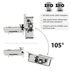 Durable Material: The heavy-duty soft closing hinges are made of solid steel. The hidden cabinet hinges are made of solid metal material. The damping mechanism and spring are strong, making the hinge operate long-lasting. The soft self-closing hinges are hidden types. It's whether you prefer modernity or traditional touches. 1/2" Overlay Soft Close Hinges:Each cabinet hinge has a built-in damper that creates a self-closing action that reduces the closing speed, which can protect your fingers. Heavy-duty hinges feature a stainless steel finish that has been tested for durability hundreds of thousands of times. Suitable for face frame and frameless cabinets. Such as kitchen cabinet doors, closets, TV cabinets, bookcases, wine cabinets. PRODUCTS SPECIFICATION: Soft close; Opening angle:105°; Overlay: 1/2"; Cup diameter:35mm,depth:11.6mm, Screw holes distance:(45mm). Material: Cold-rolled Steel, Surface finish:Nickel-plated.Each slow-closing cabinet hinge comes with 2 easy-to-install dowels and 3 self-tapping wood screws to ensure a perfect fit. How to choose the right hinge:For FACE FRAME cabinet, the hinges will overlay 1/2" of the frame. For FRAMELESS cabinet, the hinges will overlay 1/2" of side panel. You must choose the cabinet hinges that fit the side thickness of your cabinet(measure the distance the door panel overlaps the cabinet face). For example, if the thickness of the cabinet side panel is 1/2", then you should choose the corresponding 1/2" hinge.