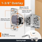 Soft Close Hinges: Cabinet Hinges provide long-lasting durability, a soft close damper, and the reinforced strength to outlast even the roughest kitchens or bathrooms. 3 Way Adjustment Structure The cabinet hinges have 3 way adjustments, which is better than a 2 way adjustment in normal. Then ,it means you could: Adjust Up and Down Adjust Left and Right Adjust Front and Back Excellent damper When you open a door and leave it, it stays back and forth. You’ve probably been shocked by the door's creaking noise. Luckily, the cabinet hinges are equipped with an excellent damper. So it would provide: Super smooth operation Suitable closing speed which could protect your hands Silent open and close, provide a comfortable home environment Product Details: Face Frame Cabinet Hinges Self, Soft-Closing Design with Built-In Damper Angle Opening: 105° 35mm Bore (Hinge Cup) Available Quantities: 10, 20, 40, or 50 Include Matching Screws 1-3/8 INCH OVERLAY SOFT CLOSE HINGES : 35mm bore (concealed hinge cup), 105-degree opening angle for the most common cupboard hinges door styles. They're also known as hidden hinges for cabinet doors or hidden cabinet hinges in kitchens & baths. QUIET, SOFT CLOSING CABINET HINGES -Our cabinet door hinge has built-in cabinet soft close damper that dampens the banging sound of any slamming of the cabinet doors. This helps the door to close more safely and quietly while protecting your fingers. 3-WAY ADJUSTABILITY FOR EASY INSTALLS & UPGRADES. Simply turn the screws on the soft close hinges for kitchen cabinets to adjust the door position. Come with matching cabinet door hinges dowels and screws to ensure a perfect fit. HEAVY-DUTY STAINLESS STEEL FINISH: Thanks to the high-quality steel metal and built-in soft close cabinet door damper mechanism, our soft close hinge for cabinets with 50,000 times tested for performance and durability to last a lifetime. 100% SATISFACTION GUARANTEED: Return soft close door hinges for replacement or refund in 90 days. Bulk hinges options available, update your cabinets with strong, reliable soft close cabinet hinge from by clicking 'Add to Cart’ now.