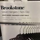 By BROOKSTONE 50 Pack - Velvet Hangers, Non-Slip with 360° Swivel Hook. They are Lightweight & Slim, Strong & Durable, have Space Saving Design, are Heavy Duty, and Won’t Stain Fabric according to the company. Box has been a bit banged up but all hangers are in tact and in great shape! We are a smoke free/Pet friendly home. Don’t forget to follow us and check out our page regularly as we add stuff regularly!