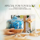 Product Description: Our essential oil diffuser is an elegant ornament at home, bedroom, living room, children's room, study room, office, and yoga room. Ultrasonic Aroma Diffuser Benefits: moisturize skin, refresh indoor air, therapeutic benefits, relieve tiredness, get better sleep. Specification: Main material:Hand-blown glass cover, BPA-free plastic base. Product Size: 6.5’’ x 7’’. Product Weight: 1.87lb. Capacity: 500ml. 500ml Diffuser 2 MIST MODES for Large Room: Continuously spray and interval spray. Continuously mist can run around 15 hours and interval spray (stop each 30s) will last around 21 hours. 500ml Essential Oil Diffusers Runtime: 15-21H. 500ml Hand-blown Effect Oil Diffuser Light Mode: Select the gradual light mode: when you turn on the diffuser, the light is default gradual. Then, press the "light" button, you can choose the fixed lights(seven colors optional). Input: 100-240V 24Hz. Standard: US Plug. Aromatherapy Humidifier Defusers Safe Waterless Auto-off Design: prevents it from overheating when runs out of water, which assures safety for you and your family. Perfect to set and go to sleep without worry. Package Includes: 500ml Hand-blown glass essential oil diffuser, a DC power adapter, and an instruction. Notes & Tips: 1. Do not invert the base when residual water or moisture. 2.Please add water below Max line, otherwise will cause a small mist or no mist outlet. 3.Make sure the lid(cover) is properly in place to prevent water leakage. 4. Need regular cleaning of the white round atomizer with a soft cloth (at the bottom of the water tank) 5.Please pour out the rest water and let the water tank clear and dry when you are not using it. 6.Please read the instructions carefully before use. HANDMADE GLASS DIFFUSER - Our 500ml aroma diffusers are 6.5'' in diameter and 7'' in height. They are handblown glass,so that each glass globe is unique. The 500ml glass diffuser is designed for large capacity which will run for 15-21 hours and it is suitable for 500-1000 square feet. You can place in any area and relax. UNIQUE ART DECORATIVE DESIGN - Our 500ml glass essential oil diffuser has an elegant starry pattern glass cover and wood grain decorative base.It is very suitable for your bedroom, living room, children's room, study room, office and yoga room. AMAZING AND CHARMING LIGHT - The LED lights can be set to 7 different soothing and mesmerizing colors. Press the “LIGHT” button to adjust the light color you prefer (fix/change color). In addition, you can use the mist and light modes individually or together. ULTRASONIC HUMIDIFIER - This Essential Oil Humidifier is using a special craft and upgraded ultrasonic technology. You can add essential oils as an aromatherapy diffuser. It can release nanoscale cold mist which ensures that the quality and effectiveness of the essential oils remains optimal. 2 MIST MODES - This large capacity oil diffuser comes with 2 mist modes: continuously spray and interval spray. Continuously mist can run around 15 hours and interval spray (stop each 30s) will last around 21 hours. HIGH QUALITY AND SAFETY - BPA free material with hand-blown glass globe.After you drop several essential oils that will release cool mist to fill everywhere. WATERLESS AUTO-OFF - As a safe waterless auto-off design that prevents it from overheating when runs out of water,which assures safety for you and your family. Perfect to set and go to sleep without worry. EASY TO USE - The 500ml glass diffuser comes with a 500ml essential oil diffuser, a DC power adapter, and an instruction. It is very easy to use and clean. CREATIVE AND PRACTICAL GIFT IDEA - Our 500ml large capacity diffuser is a wonderful gift choice for birthday, anniversary, mother's Day, Valentine’s Day, wedding, graduation, Thanksgiving, Christmas to families, friends, teachers, lover, and colleague. 100% SATISFACTION GUARANTEE - We have great faith in our glass essential oil diffusers. We offer a 12-month warranty and lifetime technical support for our diffusers. Your satisfaction is our first goal!