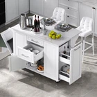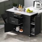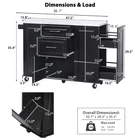 50.7" Kitchen Island with Storage Tilt Trash Can Cabinet and Pull Out Cabinet Features [Vintage Meets Fashion] Embrace the timeless appeal of traditional vintage design while incorporating modern fashion trends. Convex door and drawer panel design with white faux marble veined wood tabletop. It is sure to impress you in terms of aesthetics. [Concealed Tilt Trash Can Cabinet] Say farewell to unsightly garbage cans! The garbage bin storage cabinet is a fantastic addition to your kitchen island. It can accommodate a 9-gallon trash can (not included), effectively concealing the trash and keeping the kitchen looking tidy while also preventing pets from knocking over the bins. Additionally, it helps to block any unpleasant odors from escaping. [2 Tier Pull Out Cabinet Organizer] Our kitchen island comes with a convenient 2-tier pull-out cabinet organizer. Each tier of storage measures 11.4" x 13.3" x 3.9". The maximum pull-out length can be up to 10.2 inches. This can definitely meet your different placement needs and allow you to categorize items of different sizes. [Ample Storage Space] Measuring 50.7"W x 26.4"D x 35.4"H. In addition to the trash cabinet and double-tier storage shelves, this product is paired with 2 drawers and 1 storage cabinet for organizing dishes, cups and other items. The divider bars in the center drawer provide the flexibility to hold and separate kitchen items of different sizes. [Convenient Drop Leaf Design] The counter of this kitchen island is equipped with a foldable drop leaf. When you run out of scope, you can open it to get more operating space, so you can put more things on the counter and increase storage space. Of course, you can fold it when you don't need to use it, and leaning against a wall or corner is a good storage option. [Mobile Kitchen Island] Our mobile kitchen island on wheels has five movable universal wheels, four at the bottom four corners and one in the middle. In this way, you can move freely and ensure the stability of the movement. Two of the wheels are lockable so you can stop and secure them at any time. Greatly enhance your convenience when using indoors. [Sturdy and Secure] Our kitchen cart is built with CARB Phase II certified MDF. It has a robust structure and a 0.95” thick tabletop that can bear up to 400 lbs. We place a high value on your well-being and health. That's why we offer a durable, smooth, and scratch-resistant laminate finish tabletop. This tabletop can serve as both a cutting board and a stand for your microwave or roaster. The well-designed structure is made to endure the rigors of long-term use. [Buy with Confidence] This kitchen island with storage is accompanied by comprehensive step-by-step assembly instructions and labeled parts and hardware to ensure a seamless assembly process. Should you encounter any challenges during the assembly of this kitchen cart, please do not hesitate to reach out to us for assistance. Notice: 1.Real Product’s Color may be a little different from the image due to the lighting or monitor’s display. 2.Manual measurement has been used, there may be some reasonable error. Description Vintage Convex Door & Panel Design The vintage retro convex design never goes out of style. The smooth surface of the product harmoniously blends vintage elements, injecting personality and charm into your kitchen. Faux Marble Textured Wood Deskop Balancing sturdiness with beauty, it combines a marble-veined finish with a smooth wood tabletop. Maintaining the overall vintage flavor while incorporating a strong contemporary feel. Concealed Tilt Trash Can Cabinet Say farewell to unsightly garbage cans! The garbage bin storage cabinet is a fantastic addition to your kitchen island. It can accommodate a 9-gallon trash can (not included), effectively concealing the trash and keeping the kitchen looking tidy. 2 Tier Pull Out Cabinet Organizer Our kitchen island comes with a convenient 2-tier pull-out cabinet organizer. Each tier of storage measures 11.4" x 13.3" x 3.9". The maximum pull-out length can be up to 10.2 inches. This can definitely meet your different placement needs and allow you to categorize items of different sizes. SturdyTowel Rack The product has a solid towel rack on the side. It's perfect for holding your wet towels that you have nowhere else to put them. Of course it can also be used as a mobile pusher. So you won't be stuck pushing the island. Compartmentalized Storage Drawer Design The divider bars in the center drawer provide the flexibility to hold and separate kitchen items of different sizes. Large Drop Leaf Design A folding rolling kitchen island countertop can offer additional workspace and storage when needed, and can be effortlessly folded up to create more space. Soft Close Hinges The soft closing function is one of the best indicators of the quality of the hinges. The soft closing feature prevents all disturbing noises from the kitchen and extends the lifetime of the doors, cabinets, and hinges. Highlights&Summary Highlights [Tilt Trash Can Cabinet for 9 Gallon Trash Can] [Pull-Out Cabinet Organizer][2 Drawers and 1 Door] [Vintage Convex Door & Panel Design][Metal Handles & Metal Hinges] [Faux Marble Textured Wood Deskop][Drop Leaf Design] [Compartmentalized Storage Drawer Design] [Ample Storage Space][Towel Rack] [5* 360 Rotation Wheels with 2 Lockable Casters] [Eco-friendly manufactured P2 MDF Board] Summary The design of this kitchen island is sure to bring a different work experience to your kitchen area, skillfully combining practicality with style. The product is very sturdy, it's made of safe CARB phrase Ⅱ certified MDF boards. Equipped with a tilt trash can for a 9-gallon bin on its left side (trash can not included), and a double tier pull-out cabinet organizer on its right side. The top drawer holds utensils. The center drawer holds a variety of dishes and cups, and multiple divider bars inside allow you to separate different items. And of course there is a separate 