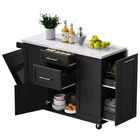 50.7" Kitchen Island with Storage Tilt Trash Can Cabinet and Pull Out Cabinet