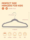 Durable Velvet Kids Hangers: Our small velvet hangers for kids made of 80% ABS plastic and 20% velvet coating. Don't let their slim profile fool you – these teen hangers 14 inch are tough cookies. They can handle the weight of even the chunkiest sweaters or jackets, up to 10 lbs. Sturdy kids clothes hangers are enough for repeated daily use Non-Slip and Bump-Free: These soft kids non slip hangers are all about keeping those teens clothes cozy and secure. No slipping, no bump, just soft and tidy Space Saving Superstars: These childrens hangers velvet are slim, but they're mighty! Our velvet youth hangers maximize every inch of closet space, giving you room for all those adorable outfits without the clutter Perfect Size Hangers for Kids' Clothes:At 14" x 8" x 1/4", our kid velvet hangers are tailored to fit kids to tweens aged 7-15 years old. With 360-degree swivel chrome hook will make hanging and arranging your kiddo's clothing feel like a breeze Verstile Use Junior Hangers: The contoured shoulders make them ideal for items with straps, like dresses and tank tops. From shirts to little jackets, these child hangers velvet can handle it all. Plus, they're great for hanging accessories like pants and scarves, making them a real multitasking marvel. With these small hangers for kids clothes, keeping your kiddo's closet neat and tidy has never been easier – or more fun!