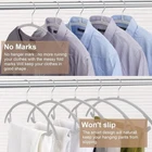 The TIMMY Plastic Hangers 50 pack is designed for organizing clothes in a kitchen setting. These gray hangers feature a unique design without shoulder bumps, making them ideal for hanging suits and other garments without causing deformation. Made of durable plastic with chrome hooks, these hangers offer a sleek and modern solution for home organization. Measuring 15.91 inches in length, 6.18 inches in height, and 13.15 inches in width, they provide ample space for hanging various clothing items while maintaining a tidy appearance in any closet.