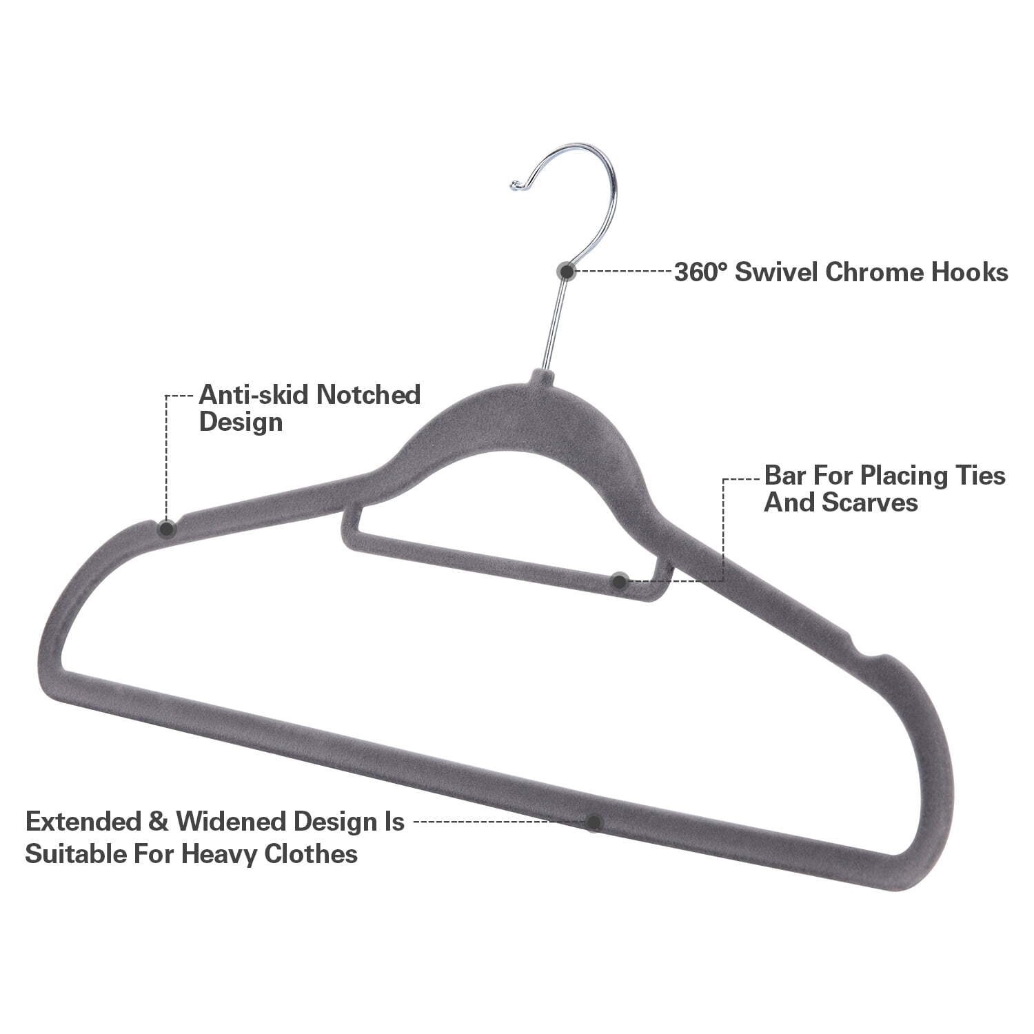 The smooth velvet layer does not only add a neat, organized look to your closet but also helps you keep your clothes in place. Our velvet hangers minimize your hassle, keeping your suits, pants, and delicate blouses from falling or sagging. The black non-slip velvet, coupled with built-in grooves, allow you to secure the dress/gown straps, keeping the garment secure and off the floor. The soft velvet instead of plastic or metal leaves no crease on the pant or blouse when you fold it over, giving you crease-free ready to wear closet options. NONSLIP:The velvet hangers can hold large capacity to 11lbs,ideal for hanging heavy garments such as coats.The velvet enhances the friction between clothes and hangers,,preventing your clothes from slipping. The hangers will help keep your garments in place and their original condition and shape.Great coat hangers for suits, shirts, coats, sweaters, skirts, dresses and pants etc.