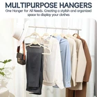 HEAVY DUTY: This heavy duty adult hangers measures 17.5*9.25 inches. Made of sturdy ABS material, it can hold up to 15 lbs. Suitable for hanging heavy winter coats, suits, pants, etc ANTI-SLIP: The surface of the clothing hangers is covered with soft velvet material, which can increase the friction to prevent clothes from slipping. No more worries about falling clothes STACKABLE HANGERS: Slim closet hangers with stackable hooks can save more than 50% space. Provide more storage options for your clothes MULTI-PURPOSE: The clothes hanger with grooves and tie bar is suitable for hanging clothes with thin straps, such as dresses, bras, ties, belts, etc. One hanger for all needs. Easily match an outfit for the next day's work and travelling STYLISH AND BEAUTIFUL: These stylish velvet hangers with 360 degree swivel are practical and beautiful. Their simple and elegant design is suitable for a wide range of clothing, adding style and beauty to your closet