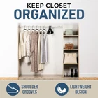 EFFORTLESS ORGANIZATION: Simplify your closet with 50 lightweight and durable black plastic hangers, designed for everyday use. SMART SHOULDER GROOVES: Specifically crafted with shoulder grooves to secure slip dresses and bras, preventing them from slipping off and maintaining a neat appearance. SPACE-SAVING DESIGN: Maximize your closet space with the slim and sleek design of these hangers, providing a clutter-free and organized wardrobe. NON-SLIP FUNCTIONALITY: The non-slip feature ensures that your clothes stay in place, preventing them from falling and maintaining the integrity of your garments. EASY CLOSET ASSEMBLY: Enjoy the convenience of easy assembly, allowing you to swiftly organize your wardrobe and keep it looking impeccable.