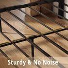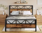 52.1 " Super High Headboard: Bed Frame with industrial tall headboard and Footboard is very atmospheric and feel free to match your preferred mattress thickness Sturdy and No Noise: Heavy Duty Steel Slats ensure the comfort and durability of the frame and provide good sleep, No more squeaky frames Quick installation: The thoughtful design makes installation a breeze and saves your precious time, you only need forty minutes to get a queen platform bed frame Industrial Style: P2 graide MDF board and black metal. Retro brown industrial appearance and reliable steel frame, both retro and modern aesthetics, are very suitable for your bedroom Under-Bed Storage: Featuring a 12.2 inches clearance beneath the bed, this platform bed offers additional storage space. Bed Frame Queen Size Dimensions: L x W x H: 83.1 x 60.2 x 52.1 inches, Capacity: 1100 lbs