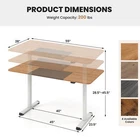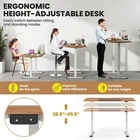Color of Tabletop: Natural Color of Frame: White Material: Engineered Wood, Metal Product Dimensions: 55" x 28" x 28.5"-45.5" (L x W x H) Outer Spacing of Legs: 45" Inner Spacing of Legs: 40" Length of Feet: 23.5" Max. Speed: 0.8"/s Noise Operation< 52 dB Max. Load Capacity: 200 lbs Net Weight: 50.5 lbs Package Includes: 1 x Electric Standing Desk 1 x User Guide Description: Experience a more comfortable and efficient laptop workstation with our height adjustable sit-stand desk! With adjustable height from 28.5"-45.5", you can freely choose to sit or stand in front of the desk. It is suitable for people of any height. And the powerful motor allows for smooth lifting without interrupting your work or study. No worry about the using safety, thanks to the anti-collision technology. The desk will move to the opposite direction when it encounters obstacle, to effectively avoid potential damage. Also, there is cable management hole and fastening cable strap to help you organize cables. Supported by T-shaped metal legs, the stand up desk ensures high sturdiness. With adjustable foot pads, it is more stable for use. Features: 28.5"-45.5" height adjustable table for sitting or standing needs Quality motor ensures quieter operation & longer service life Advanced anti-collision technology enables the desk to rebound when encountering obstacle T-shaped metal legs for high sturdiness and stability Adjustable foot pads keep the desk level on uneven floors Includes cable management hole and fastening cable strap Smooth and round edges prevent you from being scratched Wide desktop holds your laptop or other work supplies 4 available colors for you to choose from Specifications: Color of Tabletop: Natural Color of Frame: White Material: Engineered Wood, Metal Product Dimensions: 55" x 28" x 28.5"-45.5" (L x W x H) Outer Spacing of Legs: 45" Inner Spacing of Legs: 40" Length of Feet: 23.5" Max. Speed: 0.8"/s Noise Operation< 52 dB Max. Load Capacity: 200 lbs Net Weight: 50.5 lbs Package Includes: 1 x Electric Standing Desk 1 x User Guide