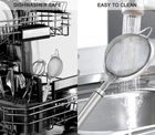 Food-Grade 18/8 Stainless Steel: INCLUDED: 5.5″skimmer spoon. Made of premium 304 stainless steel, which is known for its excellent rust resistance and durability. Built to Last: Feature broad rimmed framework design and rivet connection technology makes the fine mesh strainer more robust and not easy to loosen. 30-Mesh Fine Mesh with No Burrs: Allows for easy filtering and sieving various ingredients, such as tea, coffee, rice, milk, cocktails, sugars, pasta, flour, fruits, vegetable, Oil,juice,making your food smoother and more refined. Easy to Clean: The fine mesh design allows for easy cleaning. Hand wash or Dishwasher safe. Easy to Store: Top quality kitchen utensils. Lightweight enough to store in a kitchen cupboard or hang up for easy access. Instructions: 1.Before using the Fine Mesh Strainer, please clean it first. 2.Pour the ingredients that need to be filtered into the Fine Mesh Strainer. 3.Gently shake the Fine Mesh Strainer to let the ingredients pass through the fine mesh. 4.Take out the filtered ingredients and clean the strainer with soap and water. The Fine Mesh Strainer is a must-have kitchen tool suitable for filtering and sieving various ingredients. Made of food-grade 18/8 stainless steel, this product is known for its excellent rust resistance and durability. The 30-mesh fine mesh design allows for easy filtering of tea, coffee, rice, milk, cocktails, and other ingredients, making your food smoother and more refined. The product is easy to clean and suitable for various kitchen tasks, such as cooking, baking, and cocktail making. With the Fine Mesh Strainer, your cooking experience will be more enjoyable!