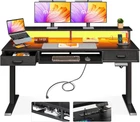 100% Satisfaction: If our desk arrives damaged, missing part, or scratched, please feel free to contact us, our professional customer support team will help you solve the problem within 24 hours. Adjustable Desk: Freely select adjustable standing desk height ranges from 30.7" to 47.6". This electric standing desk has 3 height-memorizing features that allow you to control the height easily by pressing a button. 2 Cloth Drawers & 1 Keyboard Tray: Our desk offers vast storage space for office accessories. Also, these drawers' iron structures can save installation time by reducing 80% of the assembly steps. Power & LED Lights: Our desk includes a built-in power outlet with 3 outlets & 2 USB ports to charge your devices. Also, you can use the LED Lights to vary the 20 light modes to bring you a comfortable working atmosphere or a strong gaming atmosphere. Updated High-quality Motor: Our desk comes with a new generation motor. Automatic rebound, low decibel from 45 to 55 dB, and a work-life of over 10,000 runs are the three main functions of the motor. Hidden cable management: Behind our desk, we design a hidden under-desk tray to help you manage your cables. Product Description 1 Home Office Desk 2 Office Desk 3 Gaming Desk