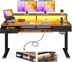 Power & LED Lights: This AODK Standing desk includes a built-in power outlet with 3 Outlets & 2 USB Ports to charge your devices. Also, you can use the LED Lights to vary the 20 light modes to bring various atmospheres to your space. 2 Cloth Drawers & 1 Keyboard Tray : AODK height adjustable desk offers vast storage space for office accessories within easy reach in home office time. Also, these drawers' iron structures can save installation time by reducing 80% of the assembly steps. Full-sized Monitor Shelf: The ergonomic structure of the monitor stand on this electric stand-up desk reduces stress on your back and neck by improving your sitting posture and gives you extra storage space for your small office and study stuff. Adjustable Desk: Freely select adjustable standing desk height ranges from 30.7" to 47.6". This electric standing desk has 3 height-memorizing features that allow you to control the height easily by pressing a button. Hidden cable management: Behind our AODK sit stand desk, we design a tray to help you manage your cables. In this case, you will not see any wires until you use them, and you will always keep a good mood since your desktop is always clean and neat. Easy Assembly & After-sale Service: Our corner desk comes with detailed instructions, all parts are clearly labeled, and you only need to follow instructions step-by-step. If your AODK desk arrives damaged, missing part, or scratched, feel free to contact us; our professional customer support team will help you solve the problem within 24 hours. Product Description 1 Home Office Desk 2 Office Desk 3 Gaming Desk