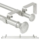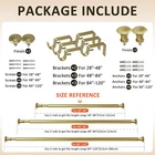 Adjustable Double Curtain Rod: The double curtain rod easily extends from 28"-48" /48"-84"/84"-120" to accommodate windows of all sizes and supports light to heavy curtains. Dual Curtain Rods: 5/8" diameter front rod for thick curtain fabric and 1/2" diameter back rod for blackout curtain fabric. Perfect for grommet curtains, back button curtains, rod pocket curtains and top button curtains. Sturdy and durable: The curtain rod adopts high temperature curing coating and exquisite polishing treatment, alloy layer, coloring layer, hot processing, anti-scratch layer, four-layer processing. Achieve anti-corrosion, wear-resistant and sturdy quality curtain rods. Decorative curtain rods have round and barrel finials on both ends to provide visual balance. EASY TO INSTALL: Curtain rod set includes 1 set of front rods , 1 set of back rods, 4 finials, double brackets, 1 set of screws and anchors and instructions. In just a few steps, you can easily install double curtain rods. More choices and thoughtful after-sales service: Available in 4 colors (gold, bronze Gold , weathered white, pewter) and 3 sizes (adjustable 28 to 48 inches, 48 to 84 inches, 84 to 120 inches) to fit any style of your home decor. Please feel free to contact us with any questions.