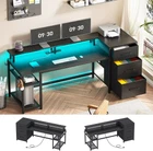 59" Office Desk with Drawers, Reversible Computer Desk with File Drawers & Storage, Gaming Desk with LED Lights About this item 【Multifunctional Computer Desk】This desk with a reversible storage shelf is equipped with a 59" large tabletop, power outlet, 2 fabric file drawers, 1 small fabric drawer, LED light, long monitor stand for dual monitors, 2-layer adjustable CPU shelves and 2 L hooks. The office desk can be placed in different locations depending on the type of house and is the best choice for small rooms or limited spaces. 【Reversible Desk with Storage】This office desk is equipped with 3 fabric drawers,2 storage shelves and 2 hooks. You can try two installation methods (left or right). 2 fabric file drawers can hold legal/letter/A4 size files. A small fabric drawer can help you privately and efficiently store sundries. This solid-constructed computer desk could hold office machines, and keep a printer or scanner within easy reach of your desk to free up work space, saving the budget for a printer stand. 【Multifunctional】Home office desks equipped with 4 AC outlets and 2 PowerIQ-enabled USB charging ports with a switch to provide power for up to 6 devices simultaneously. One-button power off to ensure safe electricity use, which strengthens security. The monitor stand can easily raise the monitor to a suitable height, reducing the tension and pain of the back and neck. CPU shelf protects the host from moisture and dust. 【Cool & Smart LED Light Strips 】The gaming desk comes with an RGB LED light strip, remote control via APP, Multiple Colors, and 29 flashing modes for you to choose from. LED light strip with music sync function, built-in sensitivity adjustable mic, led light color will change with the rhythm of the sound and music. With the timer function, just enjoy it smartly, and create a gaming and working atmosphere. Light up your gaming desk with an LED light strip. 【Easy Assemble & After-sales Service】To make assembling this sturdy office desk as effortless as possible, we have included clear and detailed instructions, and numbered parts. If your item arrives damaged, scratched, or missing part, please feel free to contact us We Appreciate Your eBay Purchase! To ensure a smooth experience, please contact us directly if you encounter any problems with your product or if your Purchase Protection period is about to expire. We're here to address any issues and resolve them within 24 hours before you consider opening a case or returning the item through eBay. Note: Colour variations may occur due to different monitor settings and lighting Additionally, T There might be slight differences in measurements due to manual measuring processes. Thank you for your cooperation!