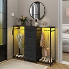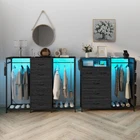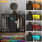 Dresser for Bedroom with Clothes Rack 5 Drawer Dresser with Charging Station LED Lights White Chest of Drawers Flexible Shelf and Open Storage Space for Bedroom Closet Entryway Living Room Dresser with RGB LED Lights: The white dresser with a built-in RGB LED light strip, offering adjustable colors and brightness, 20 colors change,21 Dynanic modes,8 Speed modes,8 Brightness modes. Multiple lighting modes suitable for different atmospheres Built-In Charging Station: The tall dresser includes a practical charging station, complete with a desktop housing 2 USB ports and 2 AC outlets. This allows you to charge multiple devices, including mobile phones, laptops, or table lamps, etc. And conveniently within arm's reach 2-in-1 Dresser with Clothes Rack: This dresser features a unique hanging design, the closet combo with a handy clothes rack for daily wear. The hanging space can also be used to place umbrellas or potted plants. 5 deep drawers offer ample storage, accommodating socks, coats, or jeans, eliminating the need for separate furniture Sturdy and Secure Construction: The dresser is crafted with sturdy iron frame and durable wooden top provide reliable strength and stability. Designed for safety, it includes anti-toppling measures, adjustable feet, open storage for easy access. Elegant handles ensure effortless drawer operation Easy Installation: All necessary hardware and step-by-step instructions are provided for assembly. Simple setup with user-friendly design and detailed instructions
