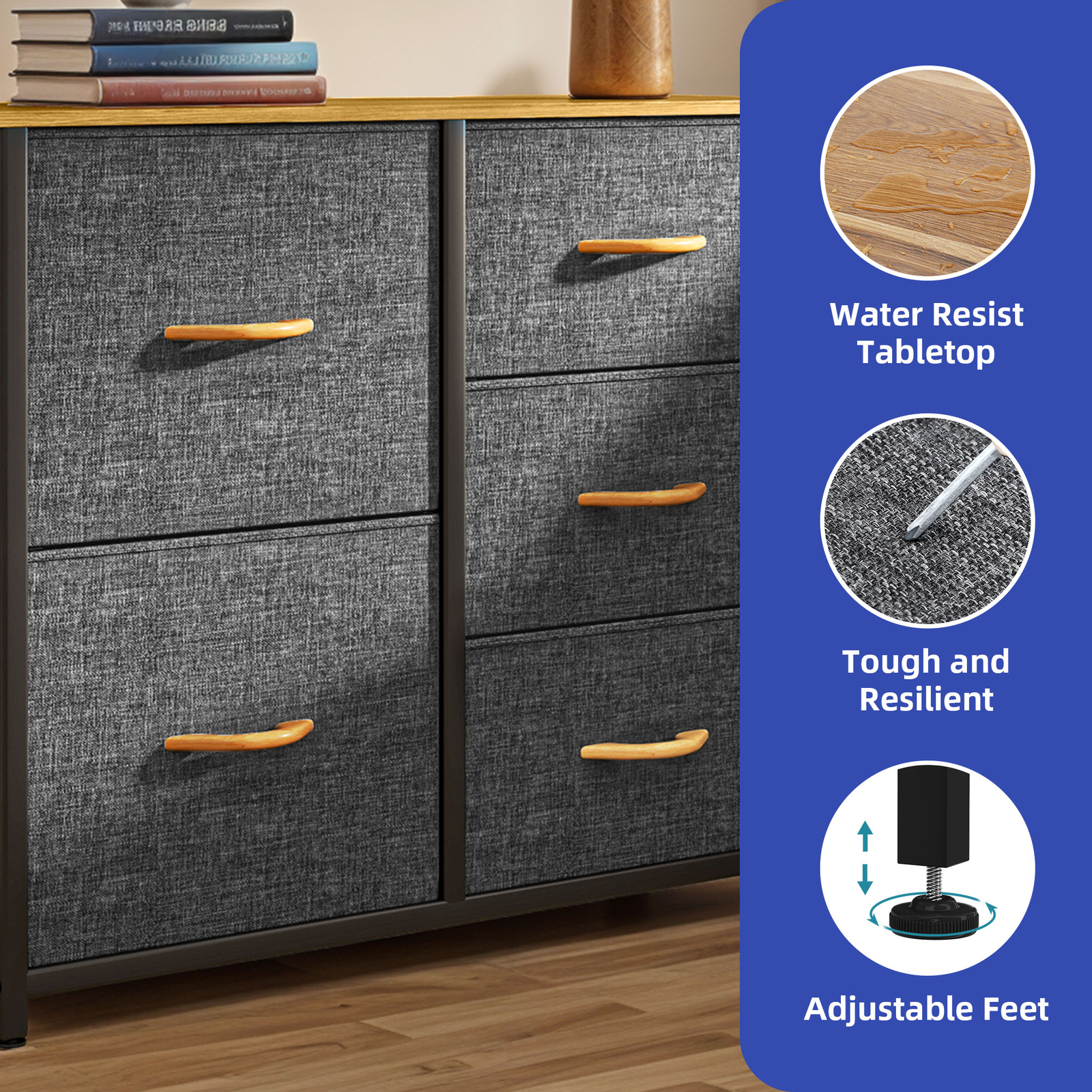 Chest of 5 Drawer Dresser Gray Fabric Tower Organizer Livingroom Storage Cabinet Product Description NOTE: Professional Installation would be Highly recommended. Description: 1. Color: Dark Grey 2. Material: MDF Board, Fabric, Plastic and Steel 3. Frame Material: Steel Frame 4. Room Type: Bedroom, Hallway and Living Room Features: Contemporary Style Storage Organizer: Elevate your environment with the sophisticated charm of our storage organizer, meticulously fashioned with premium light grey fabric drawers, a robust white metal frame, and a waterproof wooden tabletop that complements modern interiors. Sturdy and Premium-Quality Composition: Engineered for enduring quality, this organizer amalgamates a dependable metal frame with a resilient MDF wooden surface. The breathable, non-woven synthetic fabric enveloping the drawers both internally and externally guarantees longevity and ease of upkeep. Adaptable and Functional Structure: Adorned with five detachable and collapsible drawers, it presents versatile storage solutions. Effortless drawer retrieval is facilitated by the easy-pull fabric handles, while four modifiable plastic feet shield your flooring from blemishes and ensure stability on uneven grounds. Efficient and utilitarian: Featuring five generous drawers, this organizer excels at streamlining and arranging your living spaces. Be it the lounge, bedroom, corridor, wardrobe, entrance, or nursery, it seamlessly integrates into any setting, aiding in the preservation of a tidy and systematic ambiance. Effortless Installation Process: Setting up is a breeze with our encompassed detailed guidance and step-by-step installation presentation. All requisite fixtures are supplied, guaranteeing prompt and uncomplicated establishment of your organizer with minimal exertion. Dimensions: 1. Product Dimensions: 33.5"L x 11.8"W x 27.8"H 2. Big Drawers Dimensions: 15"L x 11.8"W x 11.6"H 3. Small Drawers Dimensions: 15"L x 11.8"W x 7.7"H 2. Capacity: 5 Drawers Package Included: 1. Dresser Storage Chest 2. Assembling Hardware Kits 3. Instruction Manual Book Shipping 1. Normally the item will be dipatched within 1 business day if payment is cleared before 12pm PST. 2. Please verify the correct shipping address in your PayPal account before making the payment. We only dispatch the item to the address that is sent to us at the time of checkout. 3. We don't ship to Hawaii, Alaska, Puerto Rico, APO/FPO/PO Boxes. 4. We don't provide local pick-up service. 5. Normally we will use USPS, UPS, FedEx & LTL to dispatch items. Payment 1. We accept PayPal and credit card. 2. We will ship to the confirmed Paypal shipping address that is provided with the payment only. Return 1. 30 days Money Back Guarantee. 2. Please contact our customer service to receive a RMA form first if want to return the item. 3. All returned items MUST in new condition with the original package. Contact If has any problem, please contact us by sending an ebay message. Our customer service will resolve the problem as soon as possible. On Nov 25, 2024 at 00:33:27 PST, seller added the following information: On Jul 3, 2025 at 02:44:18 PDT, seller added the following information: