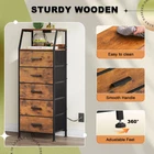 Nightstand 5 Drawer Dresser with Charging Station, Side Table with Fabric Drawers, End Table with Open Shelf, Bedside Table, Tall Dresser for Bedroom, Hallway, Entryway, Nursery (Rustic Brown) Versatile Storage Solution: This dresser storage tower can used in multiple rooms, as a storage drawer table beside the couch; entryway table, console table, side table, display table in the living room; Dresser shelf or storage cabinet in the bedroom or nursery. Nightstand with Outlets:Add 2 AC outlets and 2 USB ports, more charging spots for bedtime, plug in your phones and turn on your lamps, this night stand with drawer will comfort your bedtime with convenient charging. Ample Space: With 5 foldable fabric dresser drawers, each drawer can hold up to 10 lbs. Store all your articles for daily use. The double display shelf is perfect for keeping everyday essentials like lights, books, decorations, etc. within reach. Durable Material: Non-woven fabric drawer is breathable and can be wiped directly with a wet cloth; Solid MDF board with water-resistant design also easy to clean. Easy-to-pull metallic handle can smoothly open and close the drawer. Sturdy Structure: The tall vertical dresser anti-tipping accessories can protect you from any hurt. High-quality sturdy steel frame can provide stable support. Adjustable feet with plastic cover can protect your floor and are also suitable for uneven ground. Easy Assemble: The dresser measures 11.4"D x16.1"W x 43.5"H. Clear manual, all screws, and tools are offered in the package. You can set up the whole drawer dresser easily by following the manual, and the uploaded assembly video is also for guidance. For any further support, please contact us.