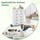 Product Description About this item Great Organizer: The 5-drawer chest ensures high capacity to meet various storage needs, like collecting your clothes, books, snacks, toys, files, cosmetics. The chest with drawers maximizes the vertical storage space while keeping your daily essentials in order. Sturdy & Stable Design: Made of durable MDF, the chest of drawers offers strong load capacity, the top and each drawer bears the same weight of 66 lbs. The secure anti-tipping device helps attach the 5-drawer chest to the wall for added stability. Large Slide-out Drawers: Equipped with convenient double handles and smooth metal sliding rails, the storage cabinets are effortless to open and close. No more struggling or straining to access your belongings - these drawers make retrieval a breeze. Wide Application: This versatile cabinet is applicable for various scenes. It can be a clothes organizer in your bedroom, a large-capacity toy collector and decorated display in your living room or entryway, or a book and file holder in your study. Easy to Assemble: Still hesitating to buy because of the difficulty of installation? This modern drawer chest comes with a detailed instruction to help you install it quickly and successfully. It's easy to assemble with one person, and twice as efficient with two! Description: Maximize the Storage Capability with the 5-Drawer Chest! The 5 spacious drawers add incredible storage space to store your clothes, books, toys etc. With double handles and smooth sliding rails, the drawers are easy to open and close. Carefully crafted from durable MDF, the chest of drawers is sturdy and strong enough to bear lots of weight. What's more, the anti-tipping device is included to securely fix the dresser to the wall, reducing the risk of tip-overs. Completed with white finish, the modern dresser cabinet matches well in bedroom, living room, office, hallway, and so on. Features: 5-drawer chest for organizing clothes, books, toys etc. Drawers with double handles are easy to pull out/in Anti-tipping device is fitted to avoid tip-over accidents Anti-slip foot pads protect floor from being scratched Thickened and durable MDF material is built to last Matches well with living room, bedroom, entryway Easy to assemble with easy-to-follow instructions Specifications: Color: White Material: MDF Overall Dimension: 31" x 17" x 47" (L x W x H) Drawer Size: 23.5" x 13.5" x 5.5" (L x W x H) Net Weight: 113 lbs Weight Capacity of Cabinet Top: 66 lbs Weight Capacity of Each Drawer: 66 lbs Package Includes: 1 x 5-drawer Chest 1 x User Guide