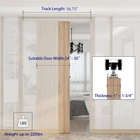 Excellent Structure: Commercial grade precision extruded aluminum box track ensures door will not jump from track, convex rails on track allow flexible and free rolling. Pocket door track is made of high-quality aluminum, which is corrosion-resistant, rust-proof. Smoothly and Steady: Three-wheel hangers guarantee the weight of the door to be evenly distributed on each wheel, with heavy-duty ball-bearing offer minimum friction and quiet rolling. This allows the three-wheel hangers to operate more smoothly and steady. Dimension: Suitable for door panel thickness 1" to 1-3/4"; door panel width 24"-30". Max Door Weight up to 220lbs (100kg) per panel. Easy to Install and Widely Applicable: The box rail structure is not complex. Quick release locking tab allows easy door installation/removal without dropping track. We also provide detailed professional installations. This track set is suitable for various scenes, such as bedroom, study, storage room, balcony, gym, office, etc. The pocket door track can meet most of your needs. Package Includes: 1x Aluminum track, 2x Hangers with mounting plate, 2x Floor guide, 1x Door bumper, and wrench & instructions & mounting screws. Great Value Option:100000 cycles test passed and guarantee the pocket door track can be used for 10 years! We are reliable and qualified manufacture. Professional engineer team is dedicated to the pocket door hardware. Professional customer service team help you solve all problems in time.