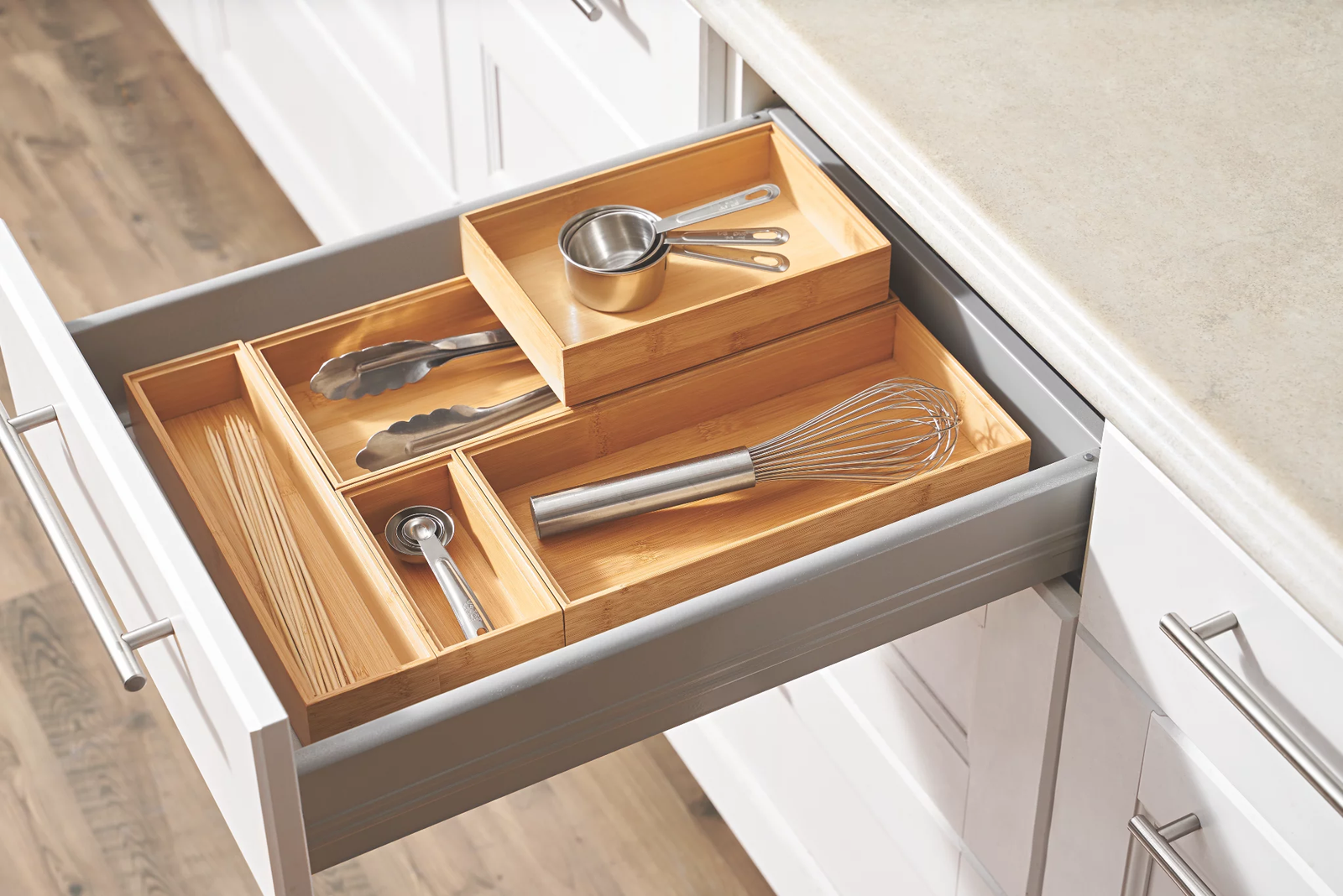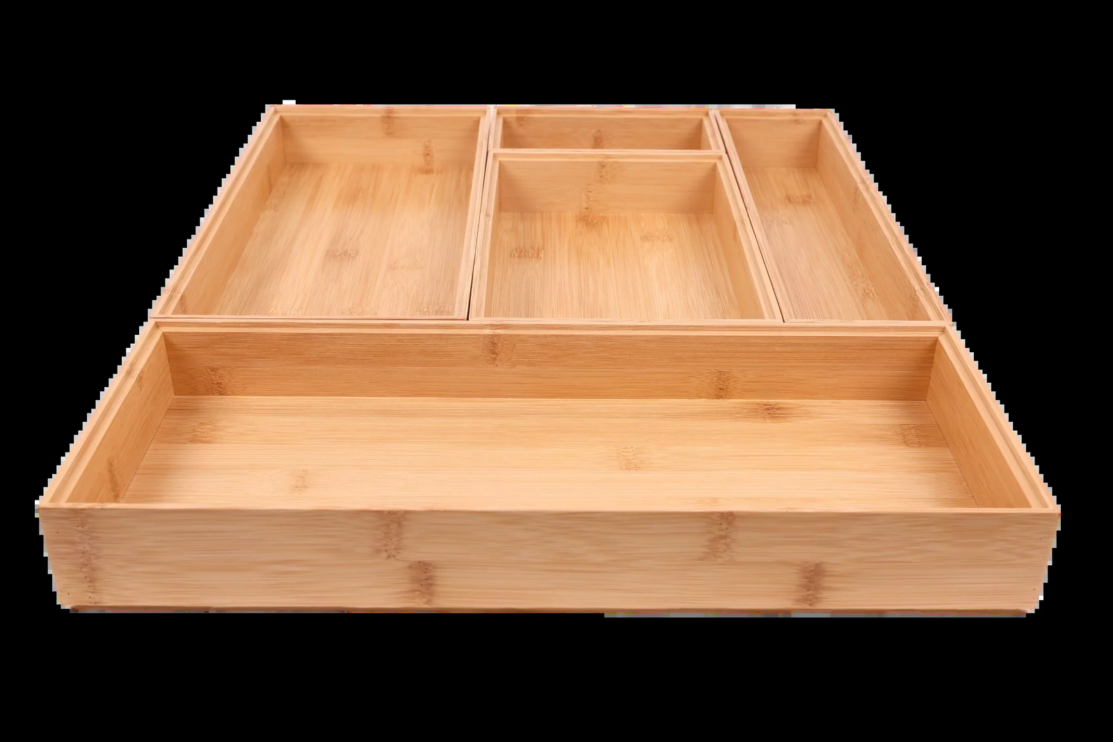 Organize Smarter with Natural Bamboo Drawer Organizer – 5 Pc Set Declutter your drawers and simplify your space with this Bamboo Drawer Organizer 5-Piece Set by Better Homes & Gardens. Crafted from 100% natural bamboo , this set is eco-friendly, durable, and more robust than plastic alternatives. Perfect for organizing kitchen, bathroom, office, or vanity drawers, each box is designed to keep your essentials neat and easily accessible. Product Features: Set of 5 bamboo organizer boxes in assorted sizes Material: 100% natural bamboo – durable and eco-friendly Size: 17.91 x 14.96 x 1.97 inches Weight: 2.86 lbs Ideal for kitchen tools, makeup, jewelry, office supplies, and more Stackable and space-saving design Great alternative to plastic organizers Multi-Purpose Versatility: Use them your way – tidy junk drawers, organize makeup or jewelry, manage bathroom items, or keep your office supplies in order. This organizer set offers a clean, stylish, and sustainable storage solution for every room in your home.