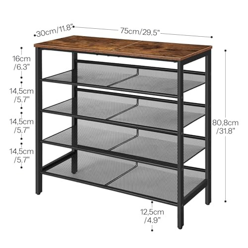 Return Policy Fast Delivery Trusted seller Shoe Rack for Entryway, 5-Tier Shoe Organizer with Adjustable Mesh Shelves, 16-20 Pairs of Shoes, Spacious Floor Mount, Metal, Industrial, Shoe Shelf for Closet, Rustic Brown BF12XJ01 Product Description Organized Shoe Storage: Bid farewell to the embarrassment of scattered shoes! This 5-tier shoe rack restores order to your home with each shelf holding 4-5 pairs of shoes, ensuring a tidy display of your footwear and banishing chaos from corners Collision of Black and Brown: Matte black frame is smooth and exquisite while the retro brown finish is noble and delicate, making this shoe organizer a perfect match to your home decorations and a charming spot for your family and friends Flexible Tilting and Leveling: Besides a spacious top, this shoe rack has metal mesh shelves to be tilted or leveled as per your preference, catering to diverse storage needs. How to store heels or tall boots? Removable design helps you Solid, Stable, Safe: This shoe rack is constructed of premium particleboard and metal mesh shelves. The top loads up to 44 lb and each mesh bears up to 22 lb, so you can enjoy safe use of this shoe rack. Of course you can expect long serviceability because the frame is hard to bent and age No Hassle Assembly: We pay special attention to the customer’s product experience, including assembly experience. So we specially improved the assemble method and procedures of the product Shipping Returns Payment Shipping Shipping is FREE to all addresses other than APO/PO boxes in the lower 48 states. All our stock ships from US-based warehouses. Shipped via USPS or UPS (depending on location and package weight) Unless stated otherwise, all orders will ship within 24-72 hours of your payment being processed. Check our feedback to see the great reviews of FAST shipping we offer. Returns Seller does not accept returns Payment We currently accept payment via eBay managed payments only. Once payment is cleared, we will dispatch your shipment within 1-3 business days. Please refer to the "Shipping" tab for more information regarding shipping speed to your destination.